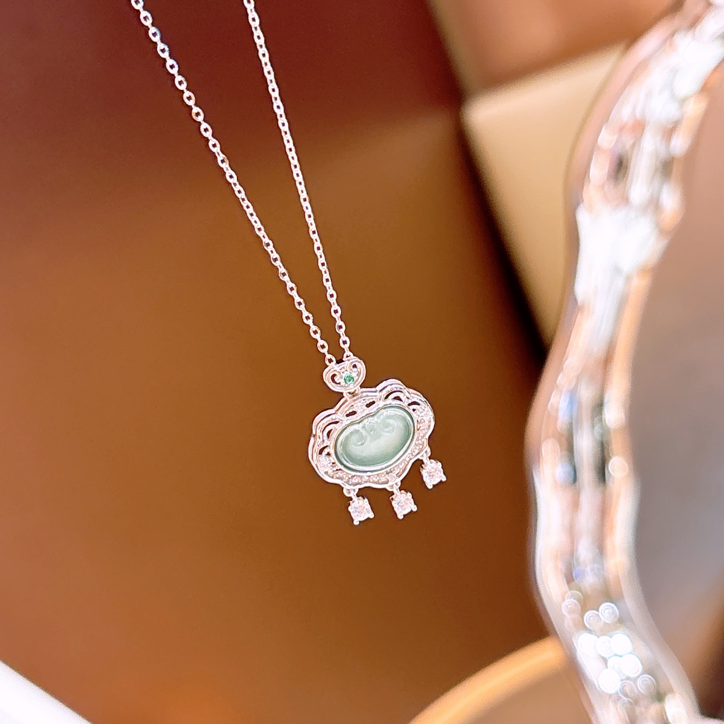 925 Silver Jadeite Necklace Pure Office Gold