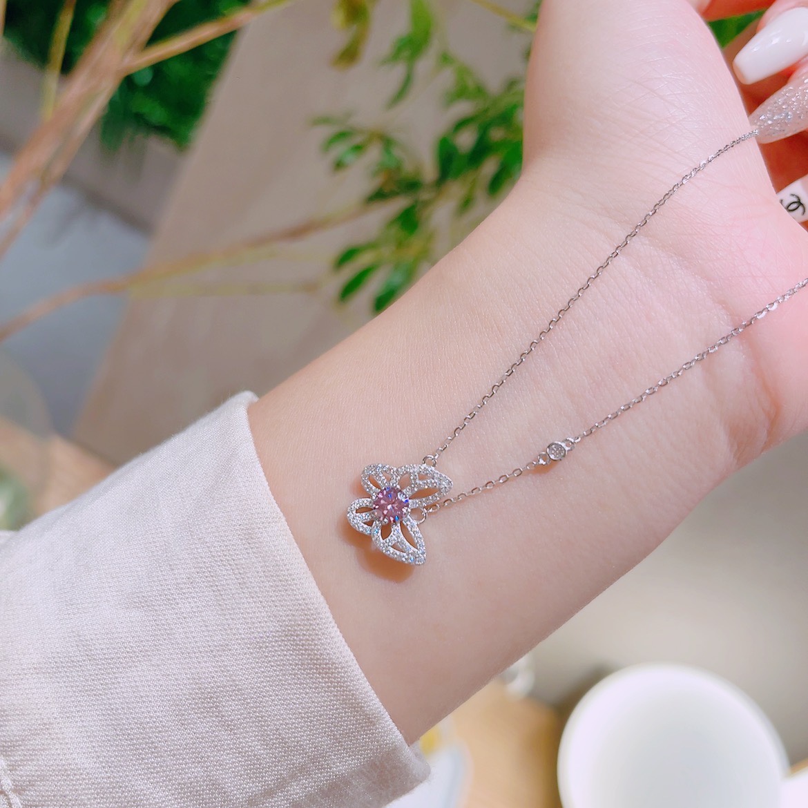 Fine Silver Moissanite Necklace Ins Style Travel Silver