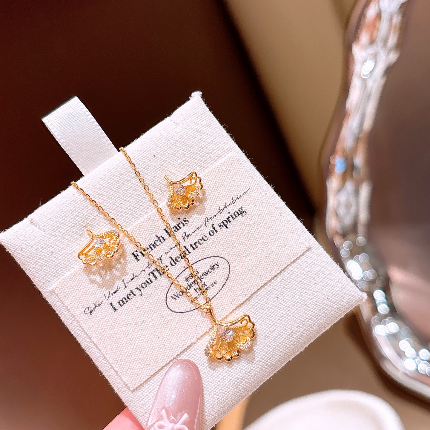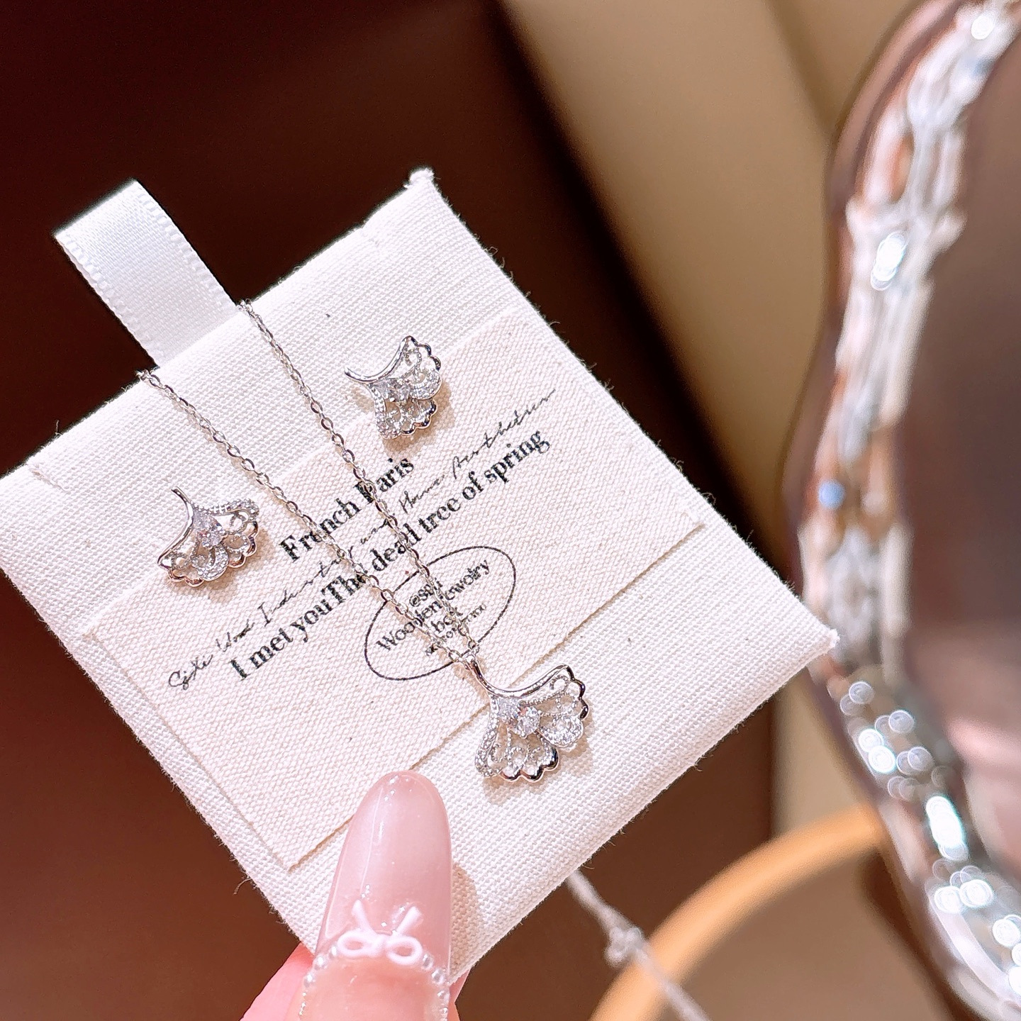 Nickel Free Silver Earrings & Necklace Set Korean Style Birthday
