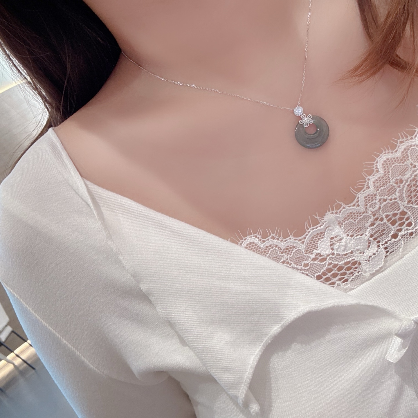 Low Allergy Silver Jadeite Necklace Ultra Minimal Graduation Silver