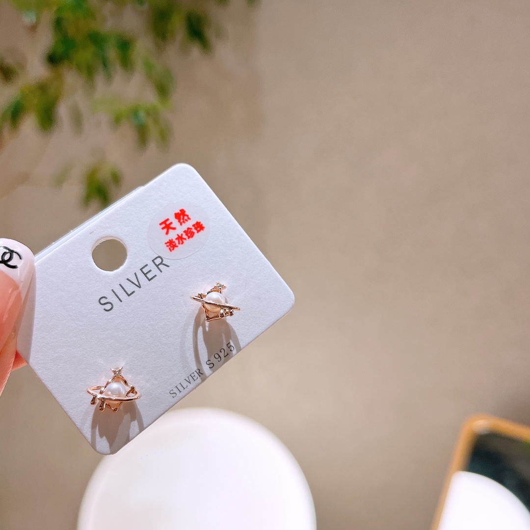 Fine Silver Freshwater Pearl Studs Romantic Annual Party Gold
