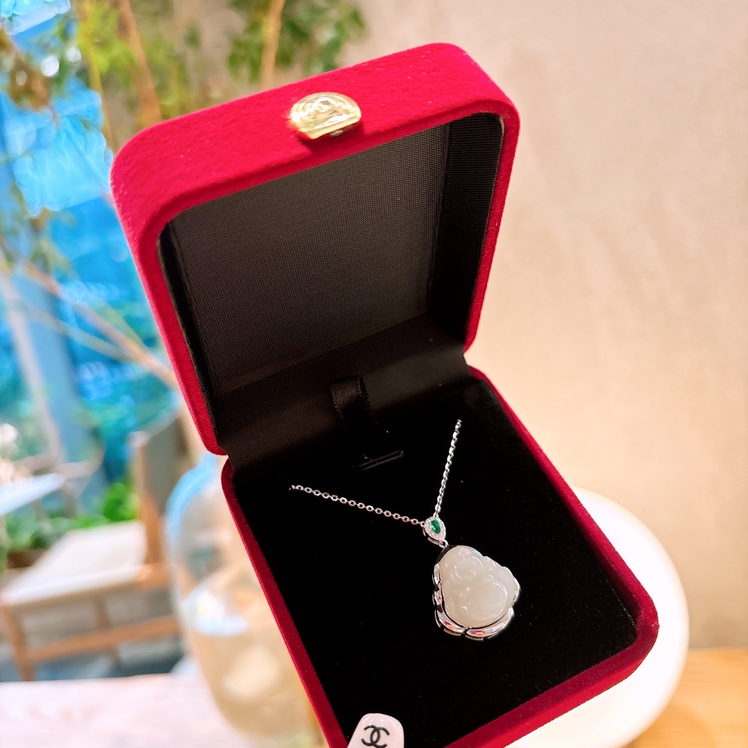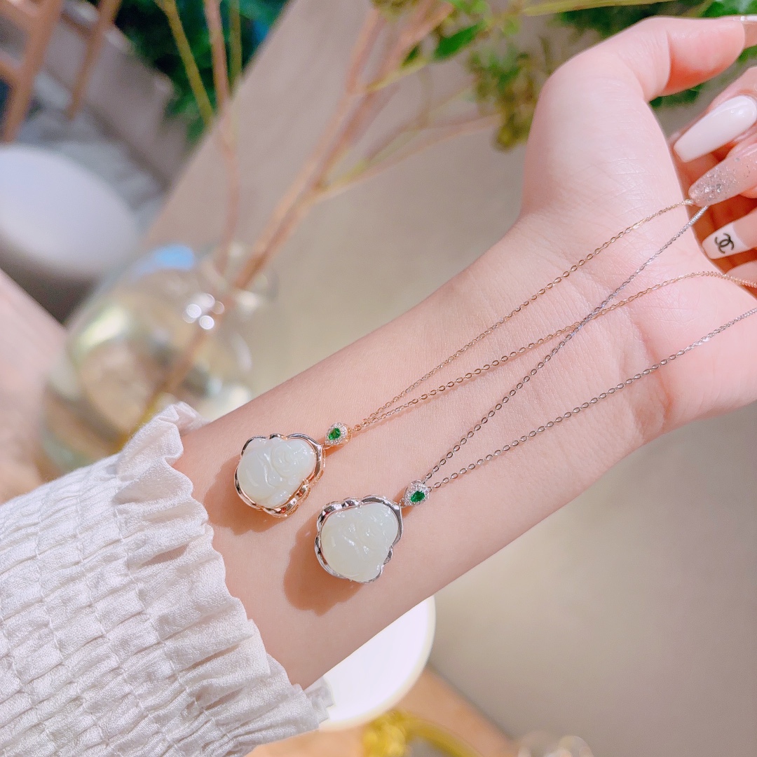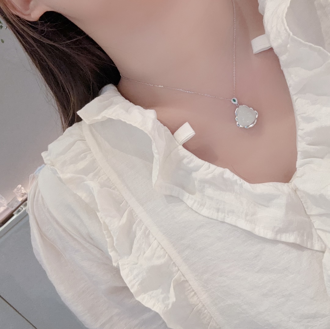 Solid Silver Hetian Jade Necklace Cute Housewarming Silver
