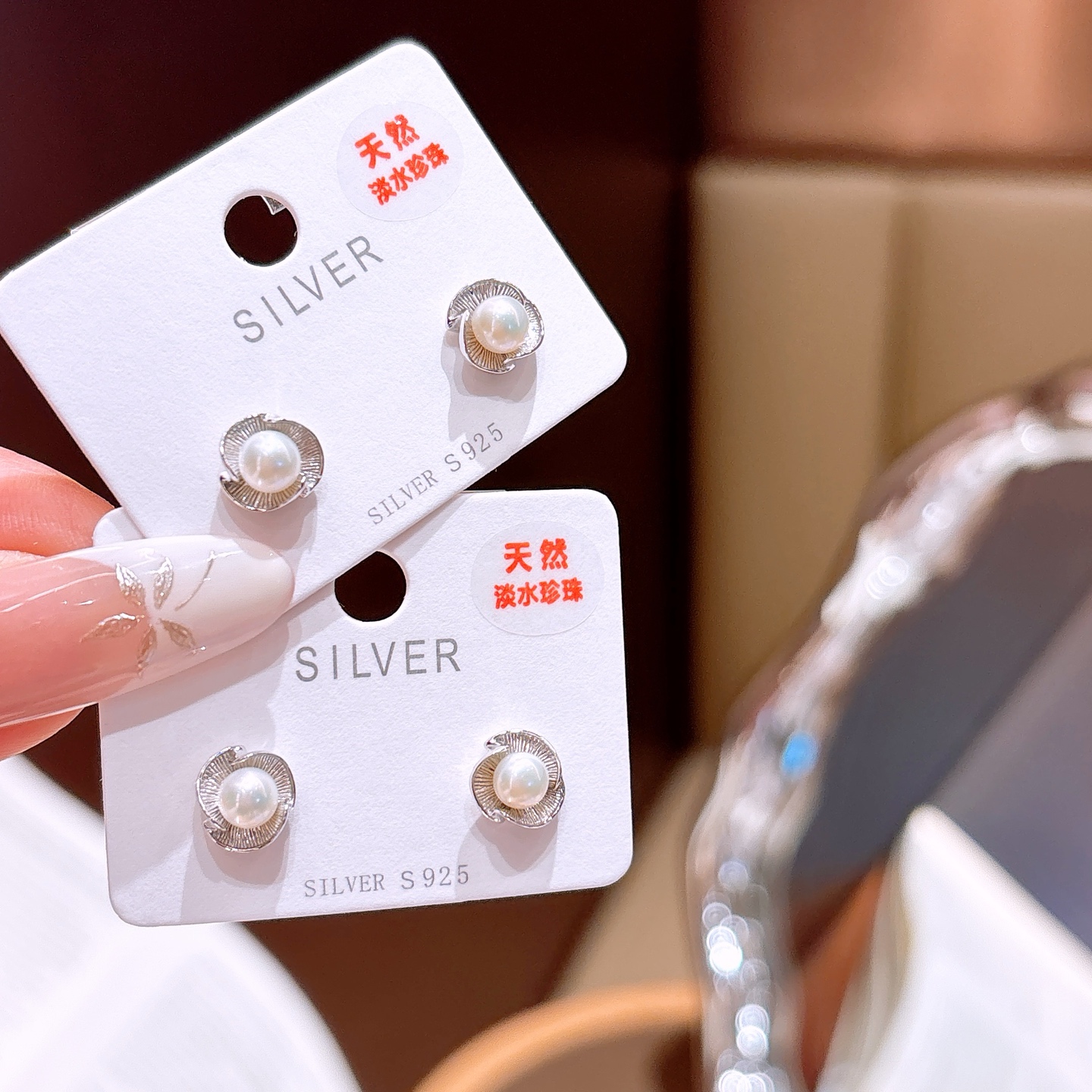 Fine Silver Freshwater Pearl Studs Romantic Valentine's Day Gold