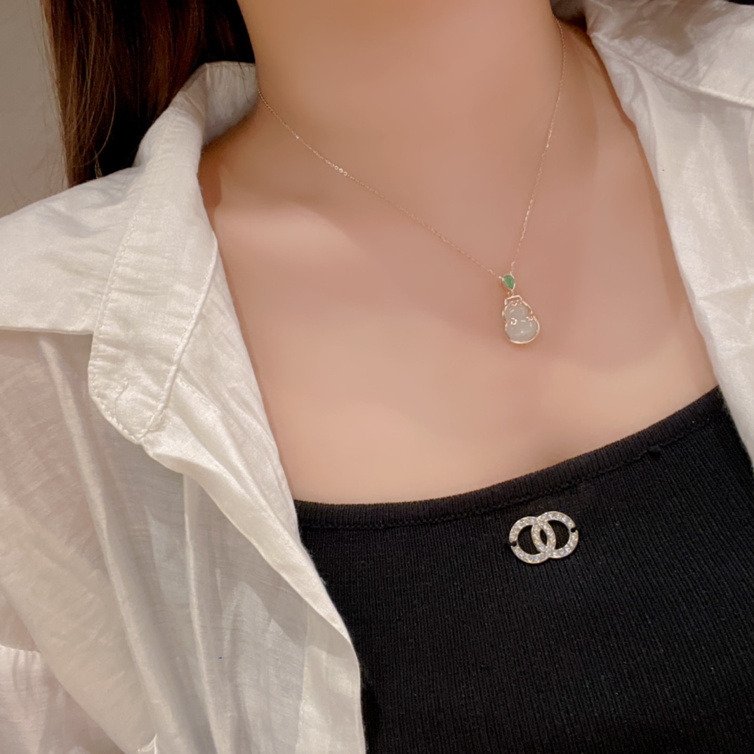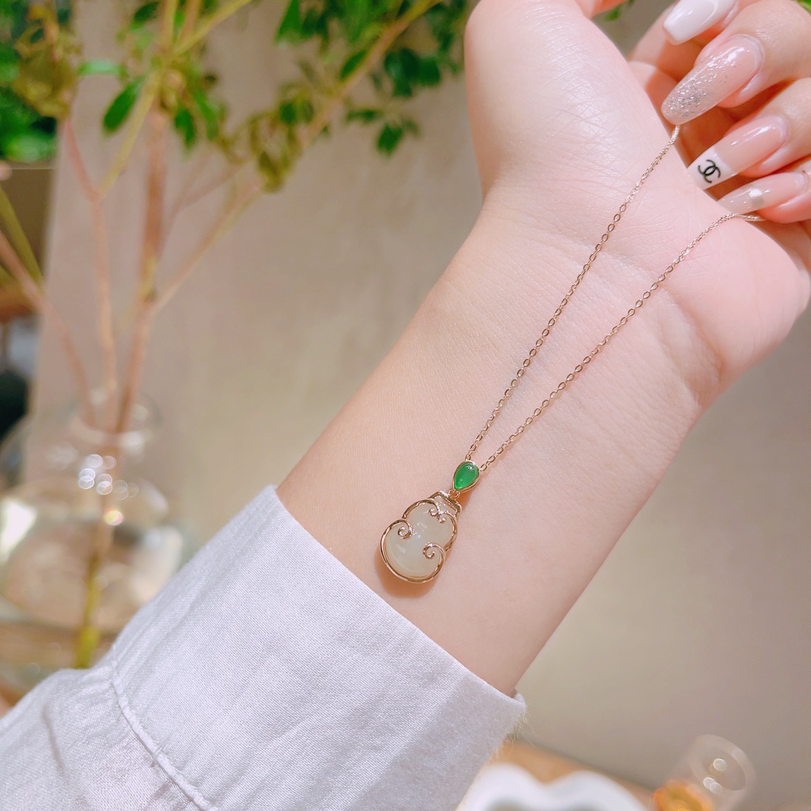 Nickel Free Silver Hetian Jade Necklace Sweet & Cool Wedding Gold