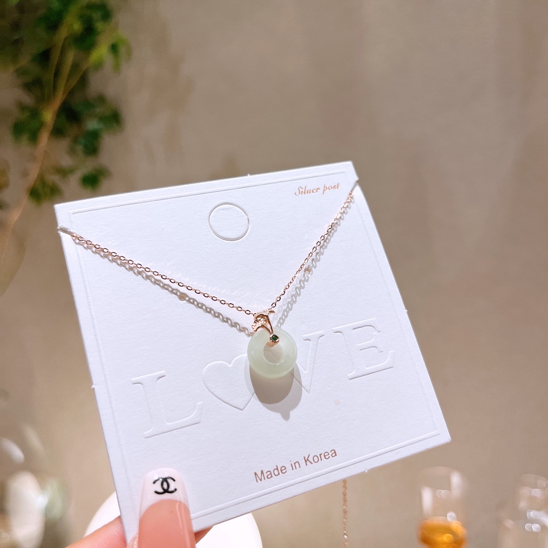 Hypoallergenic Silver Hetian Jade Necklace Forest Workplace Gold