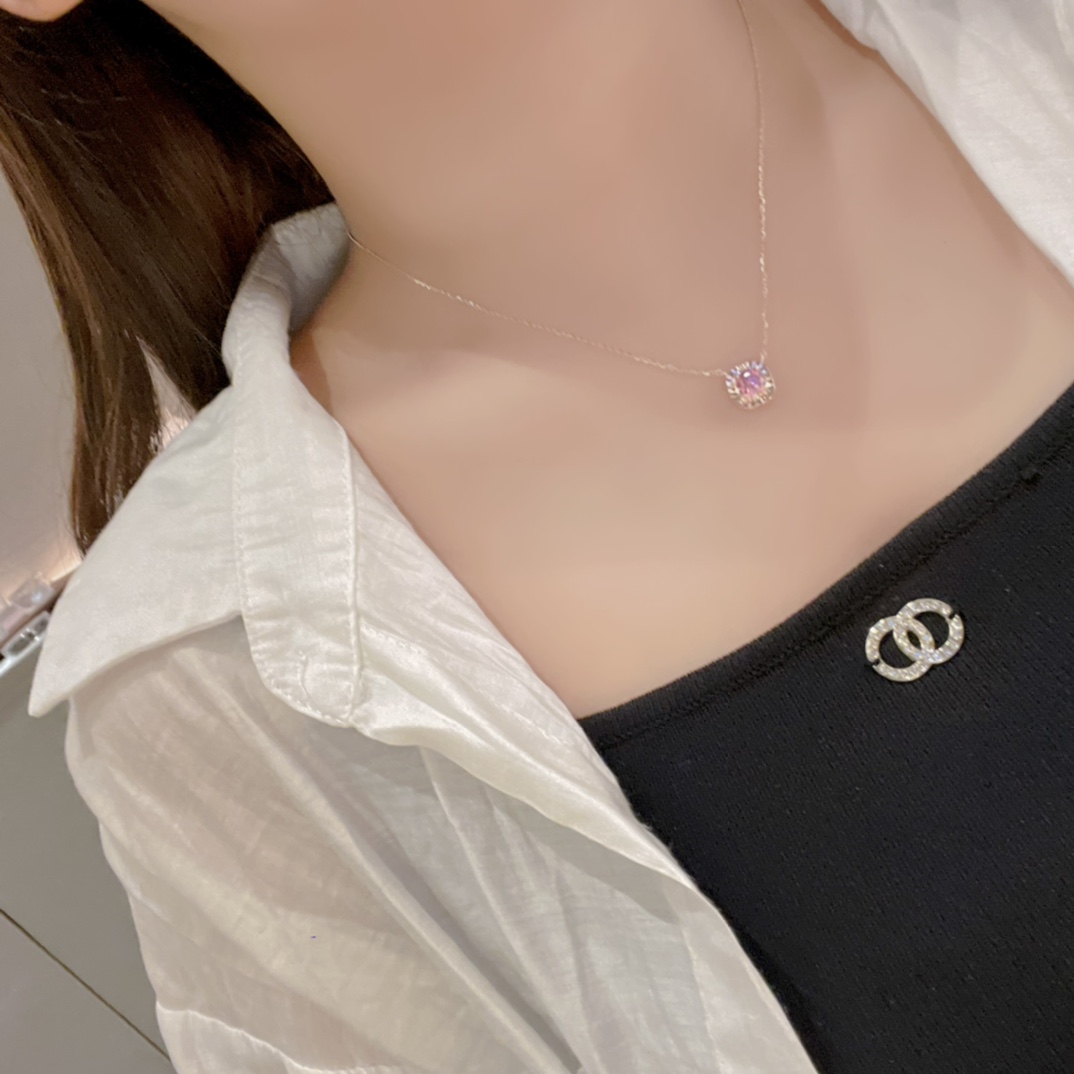 S925 Sterling Silver Moissanite Necklace Girly Father's Day Silver
