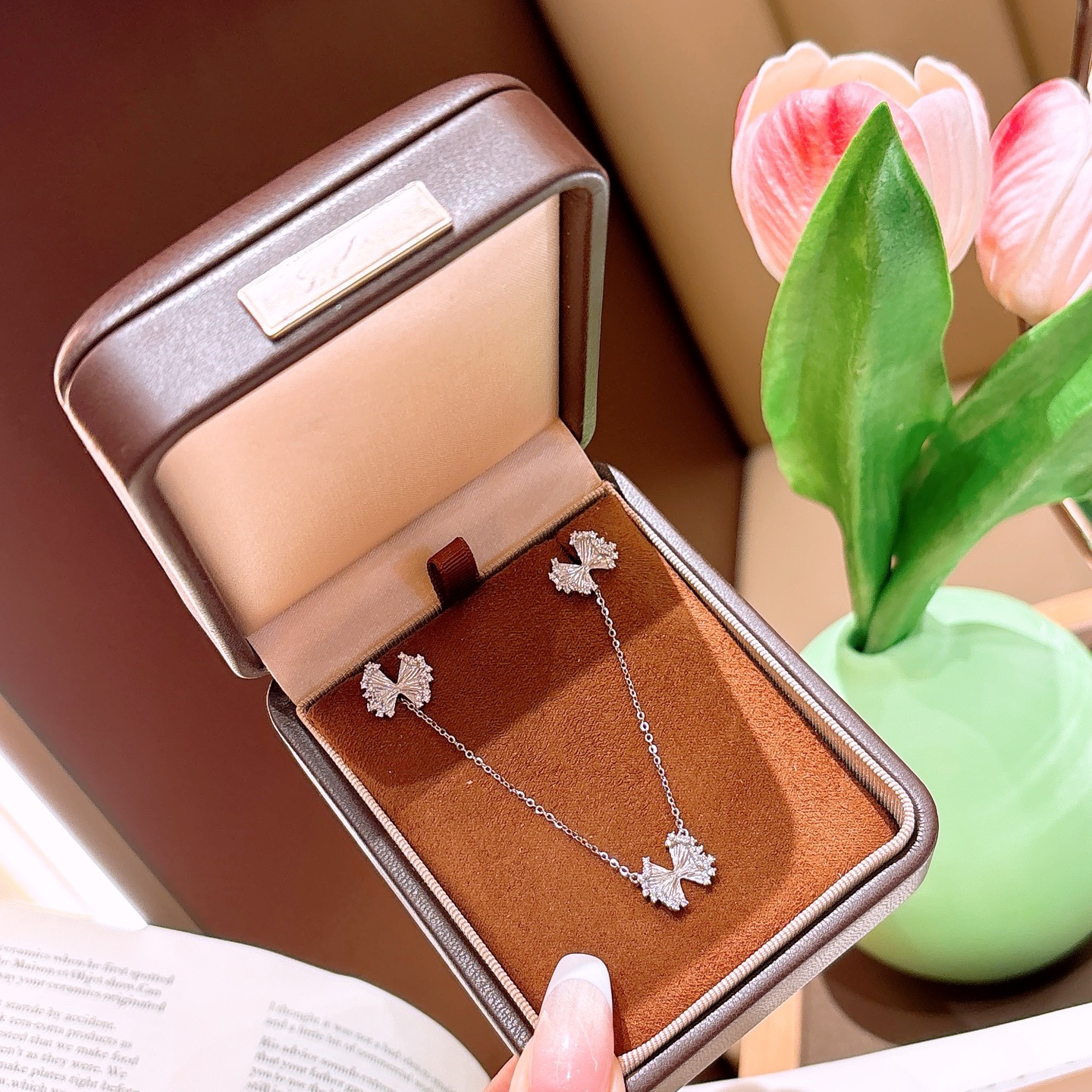 Nickel Free Silver Earrings & Necklace Set Ins Style Housewarming Gold