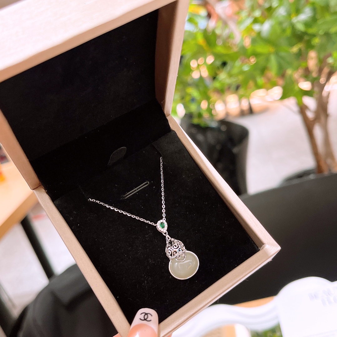 925 Silver Hetian Jade Necklace Pure Banquet Silver