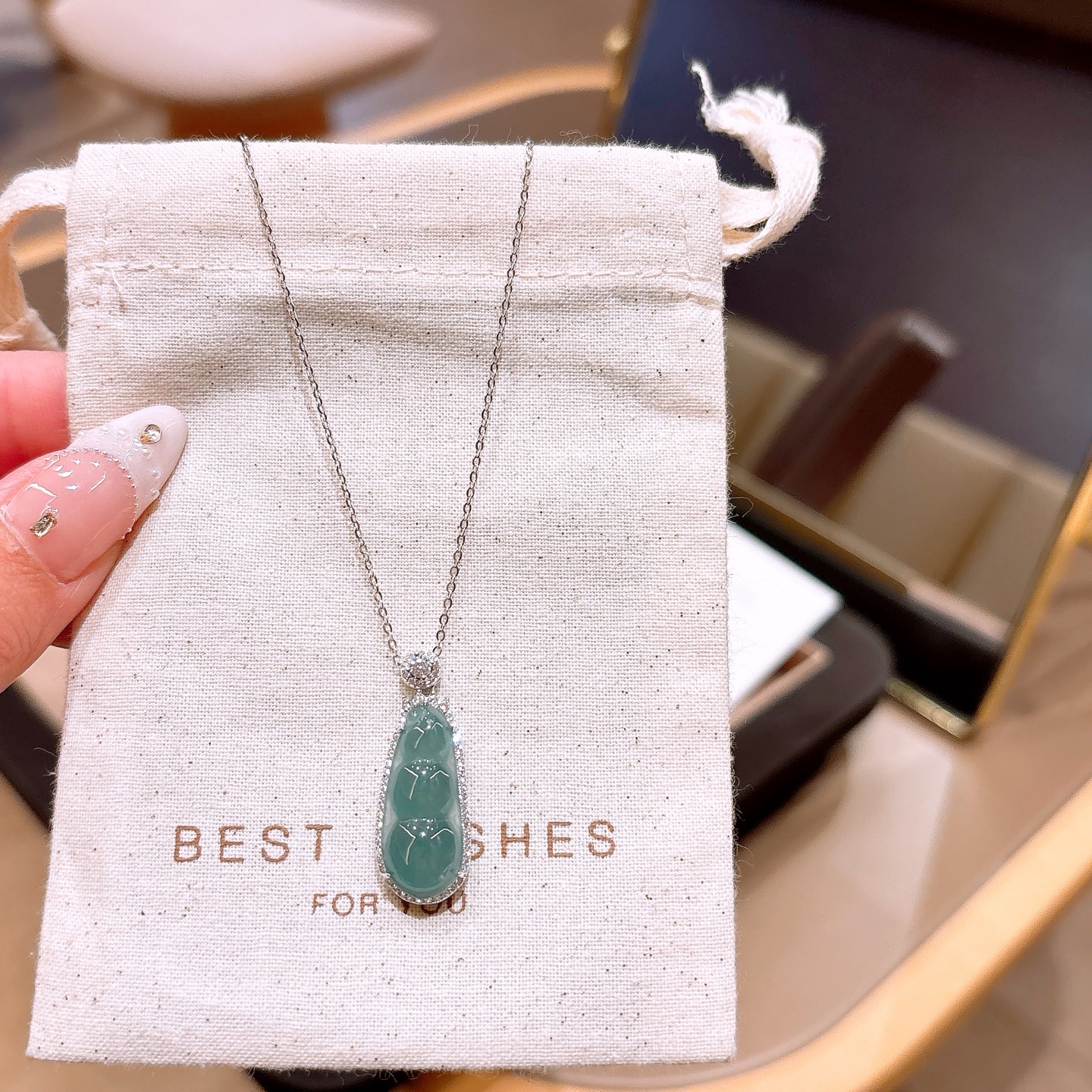 Nickel Free Silver Jadeite Necklace Ins Style Date Night Gold