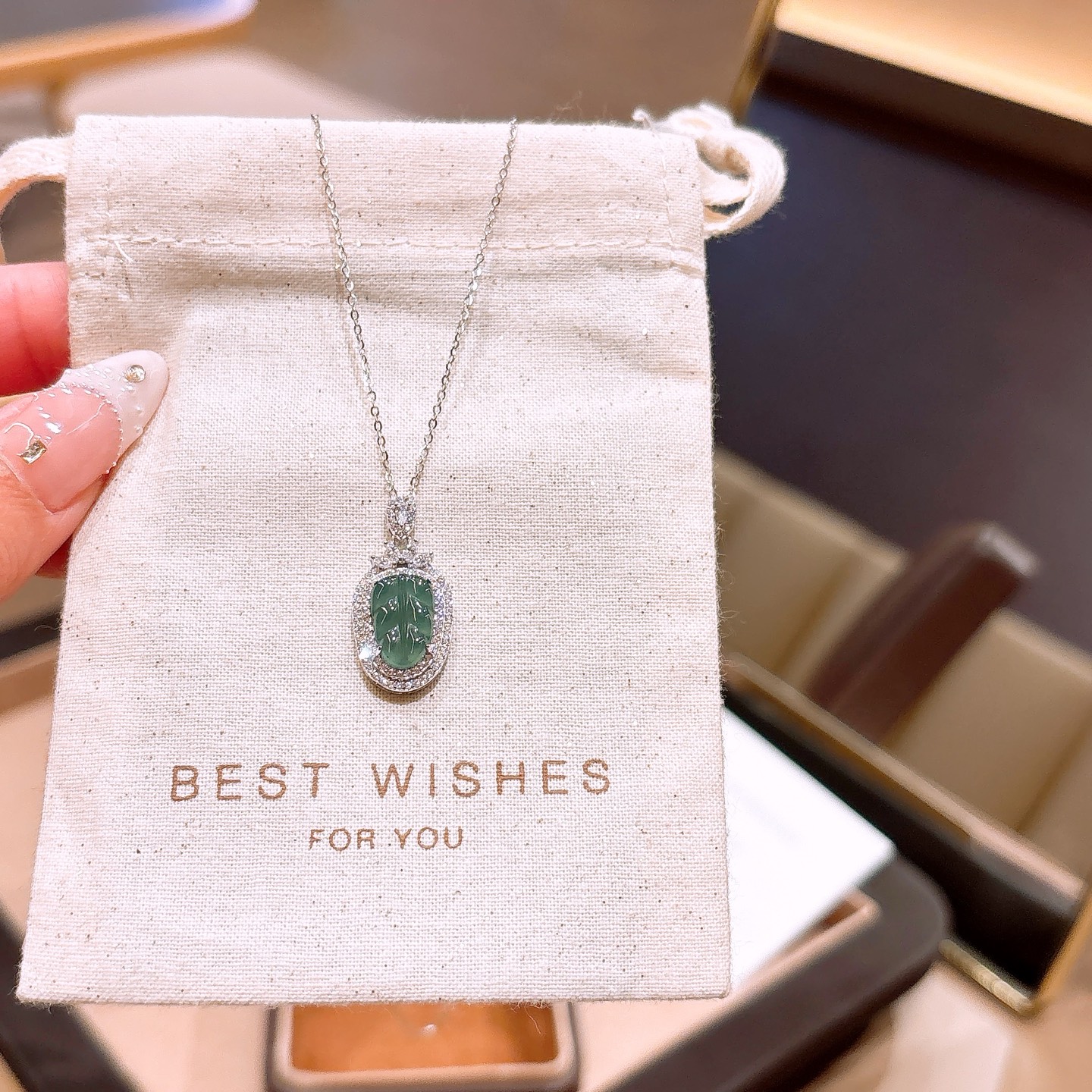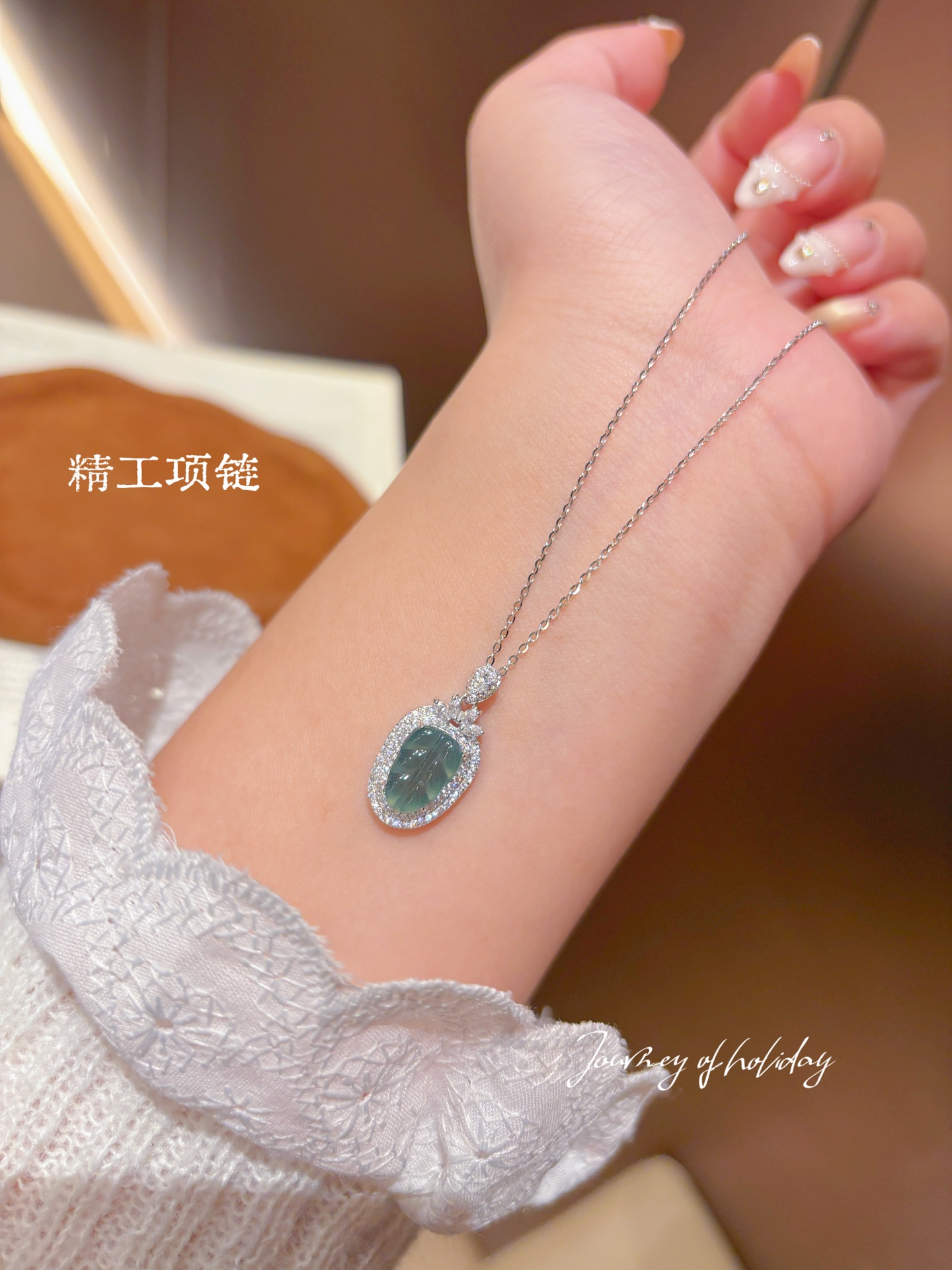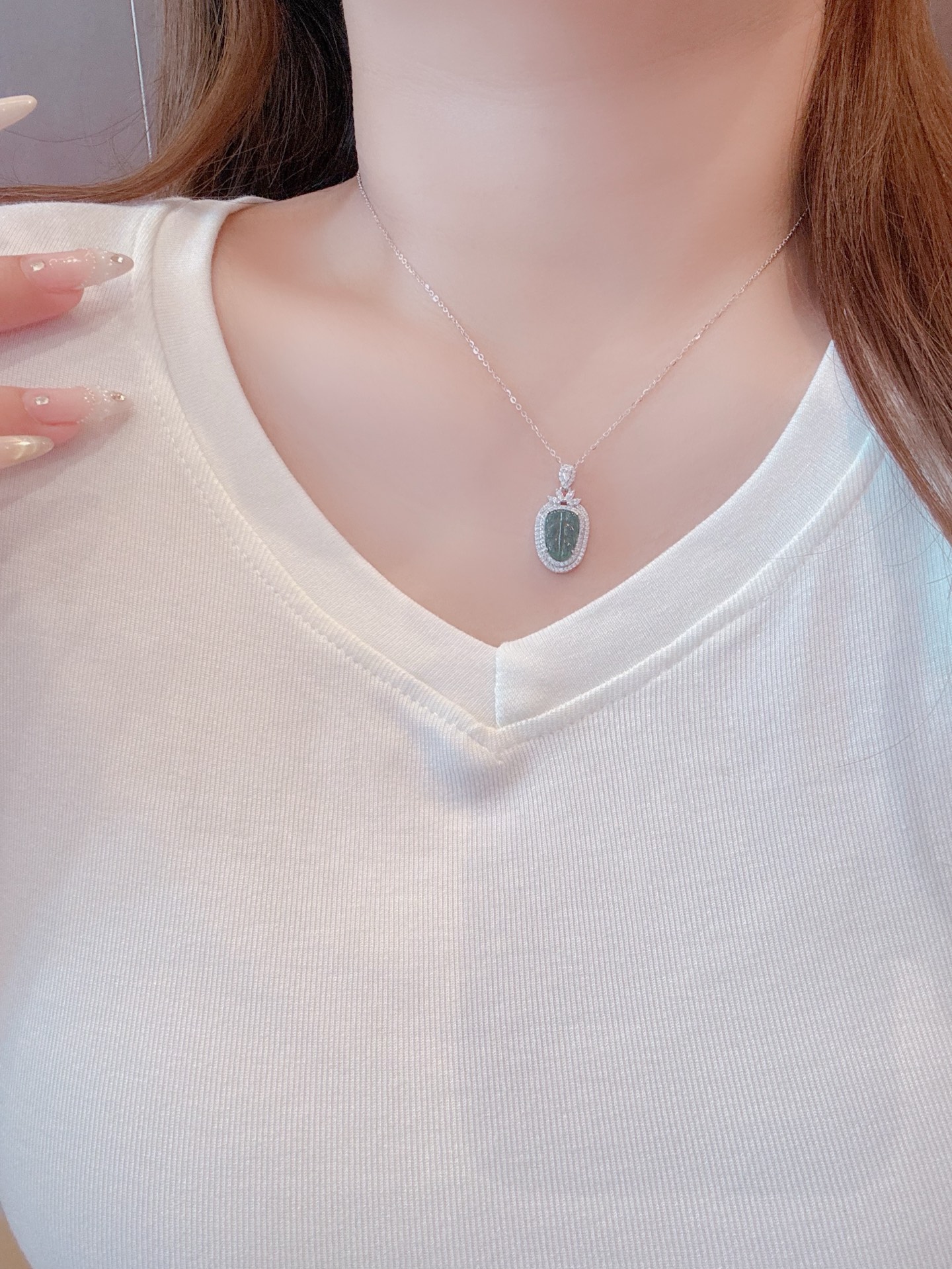 Solid Silver Jadeite Necklace Dainty Party Gold