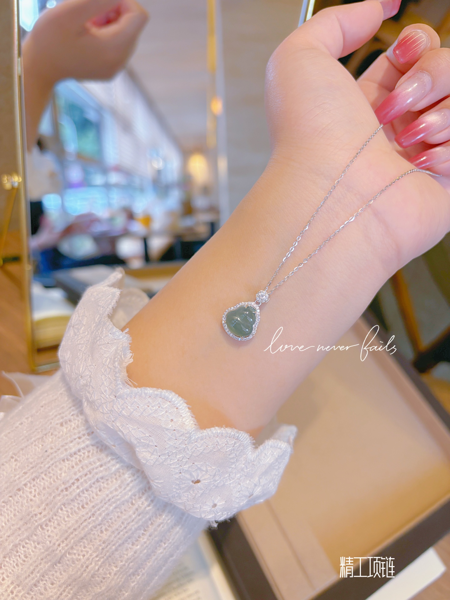 925 Silver Jadeite Necklace Fashion Annual Party Gold