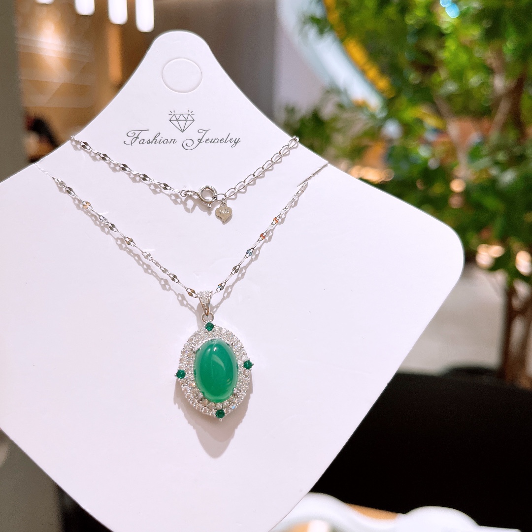 Fine Silver Green Chalcedony Necklace Sweet Travel Silver