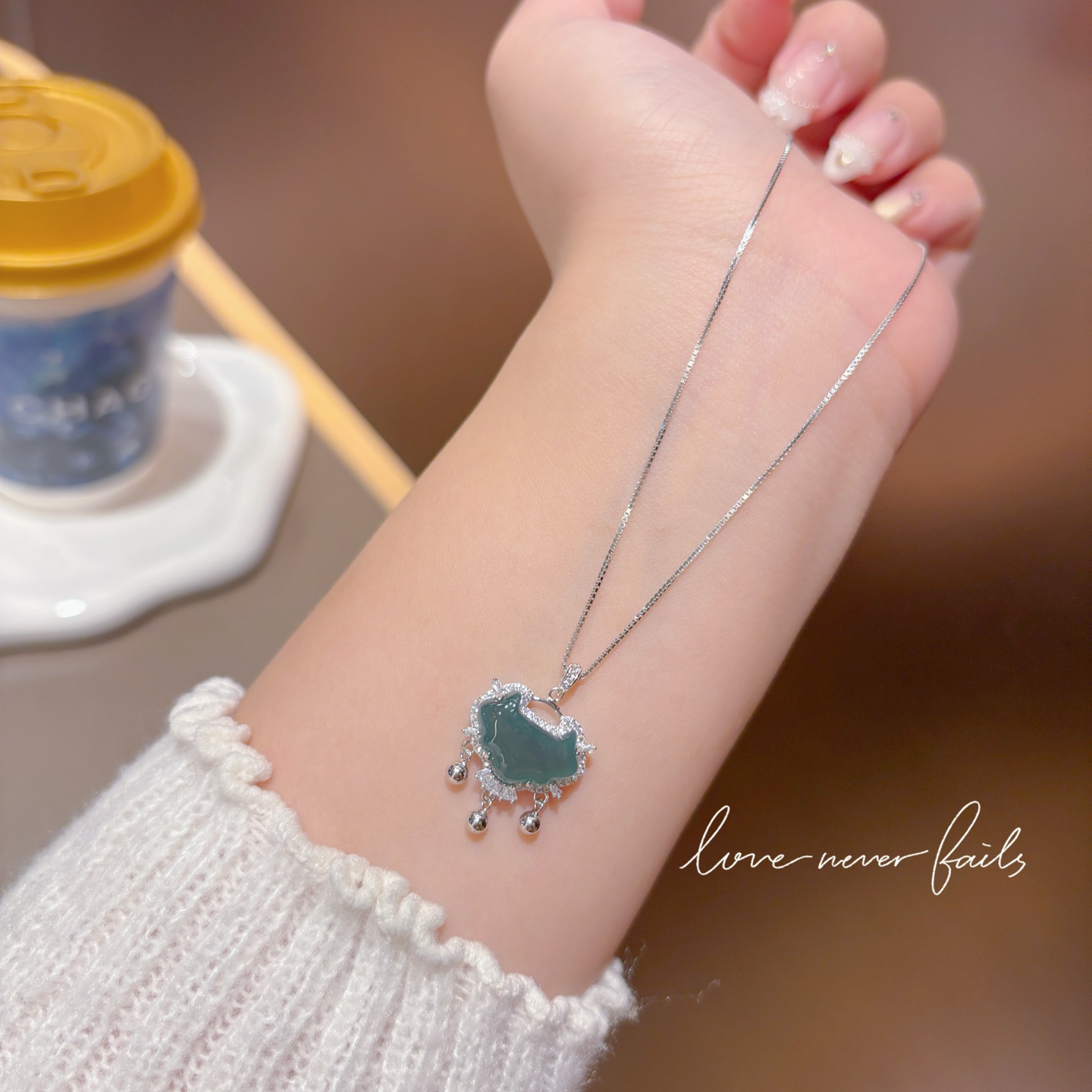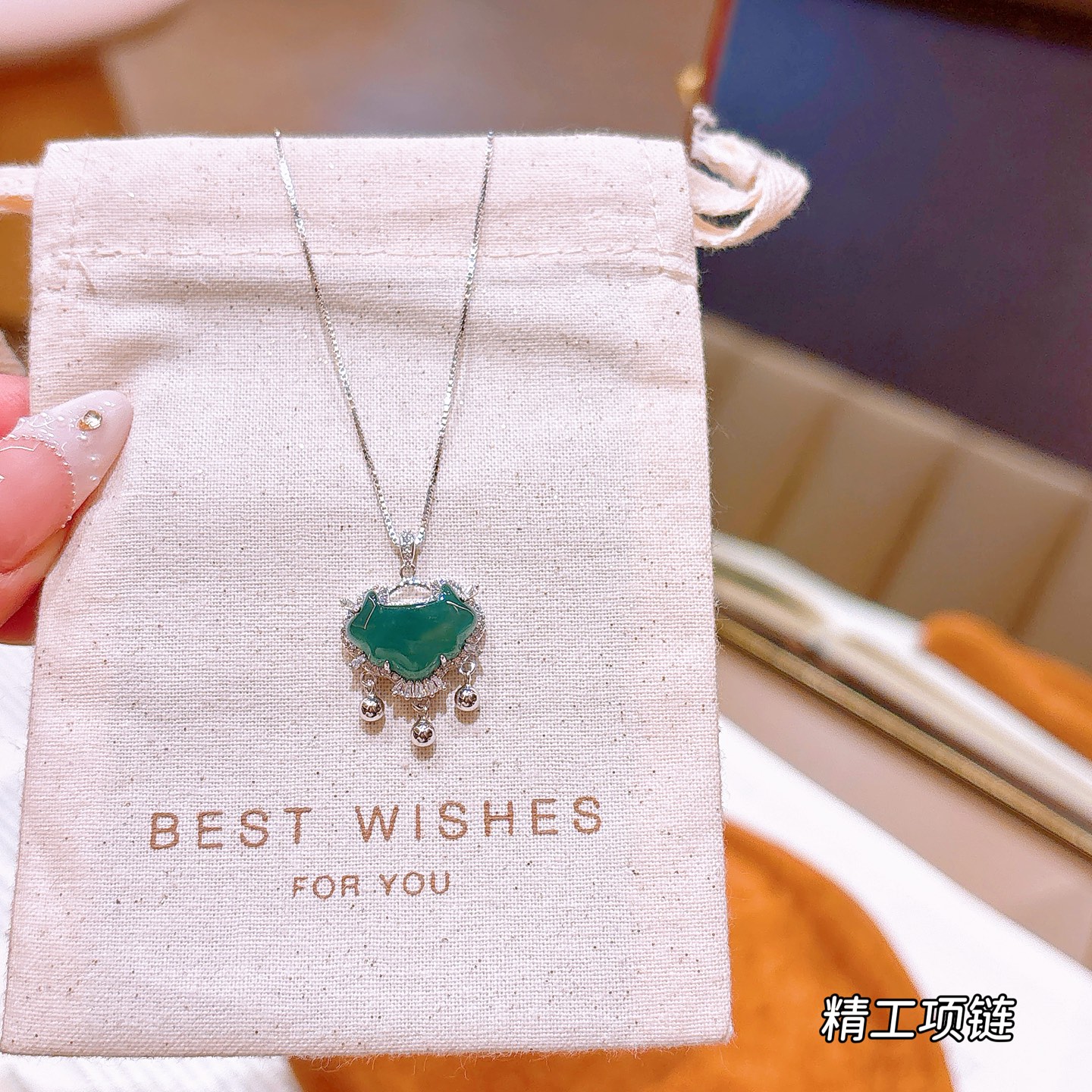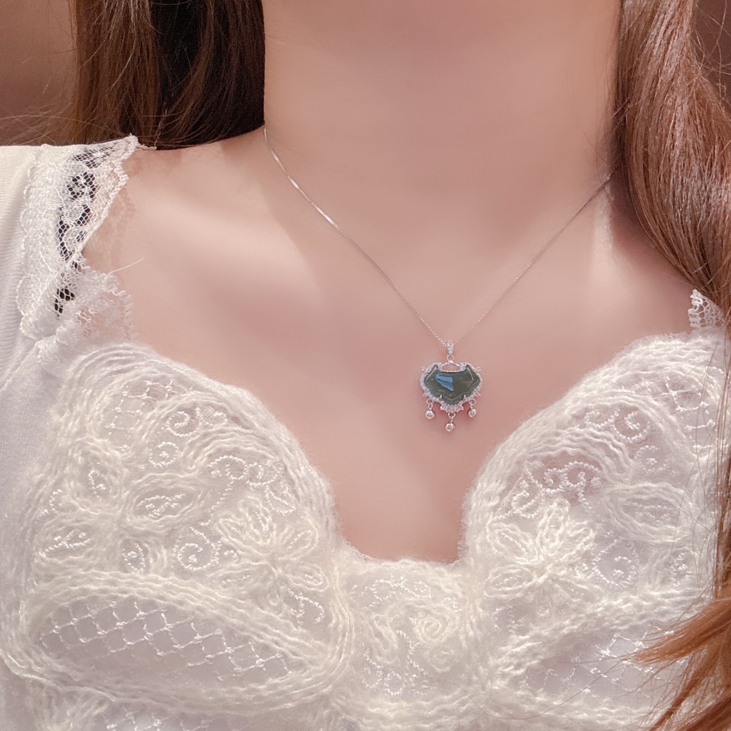 Nickel Free Silver Jadeite Necklace French Anniversary Gold