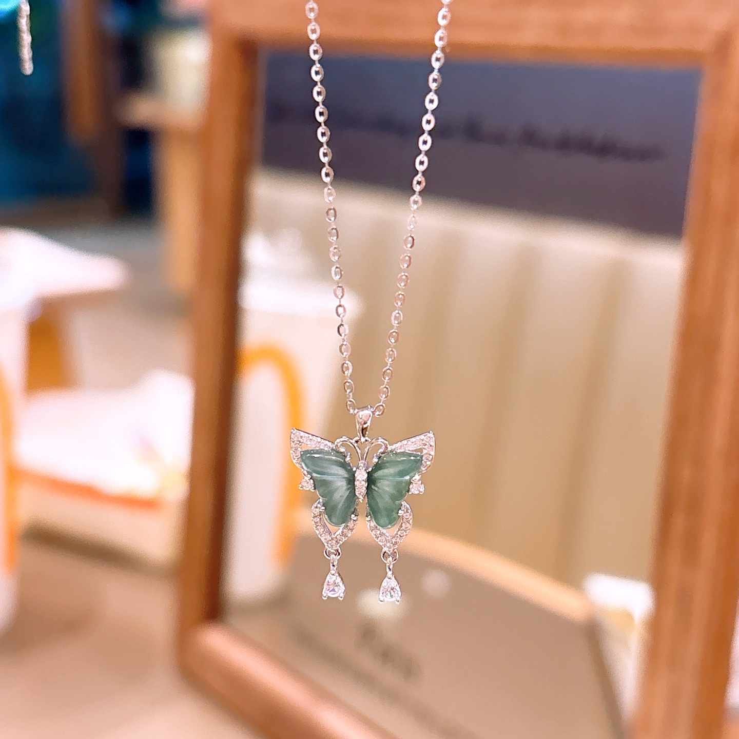 925 Silver Jadeite Necklace Girly Valentine's Day Silver