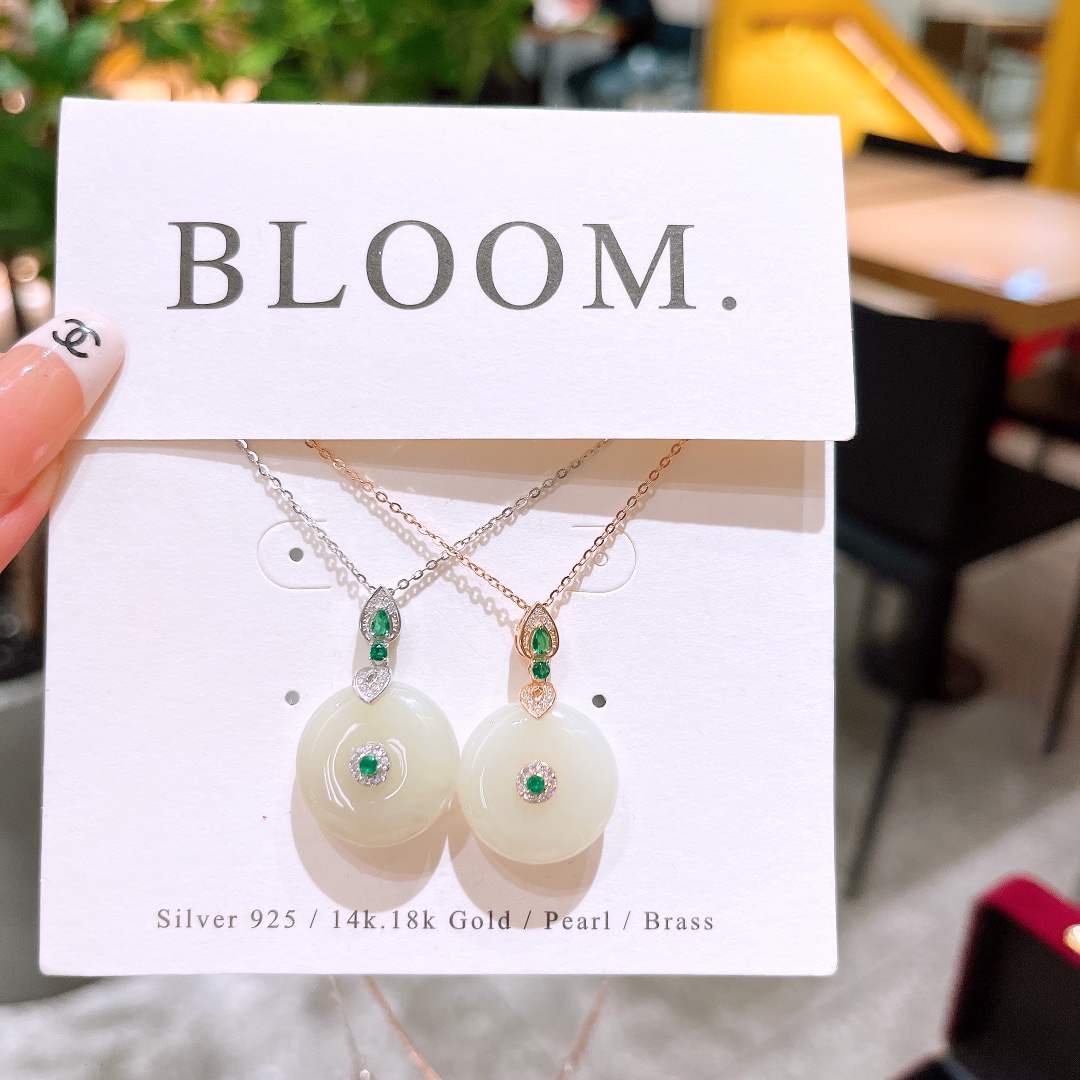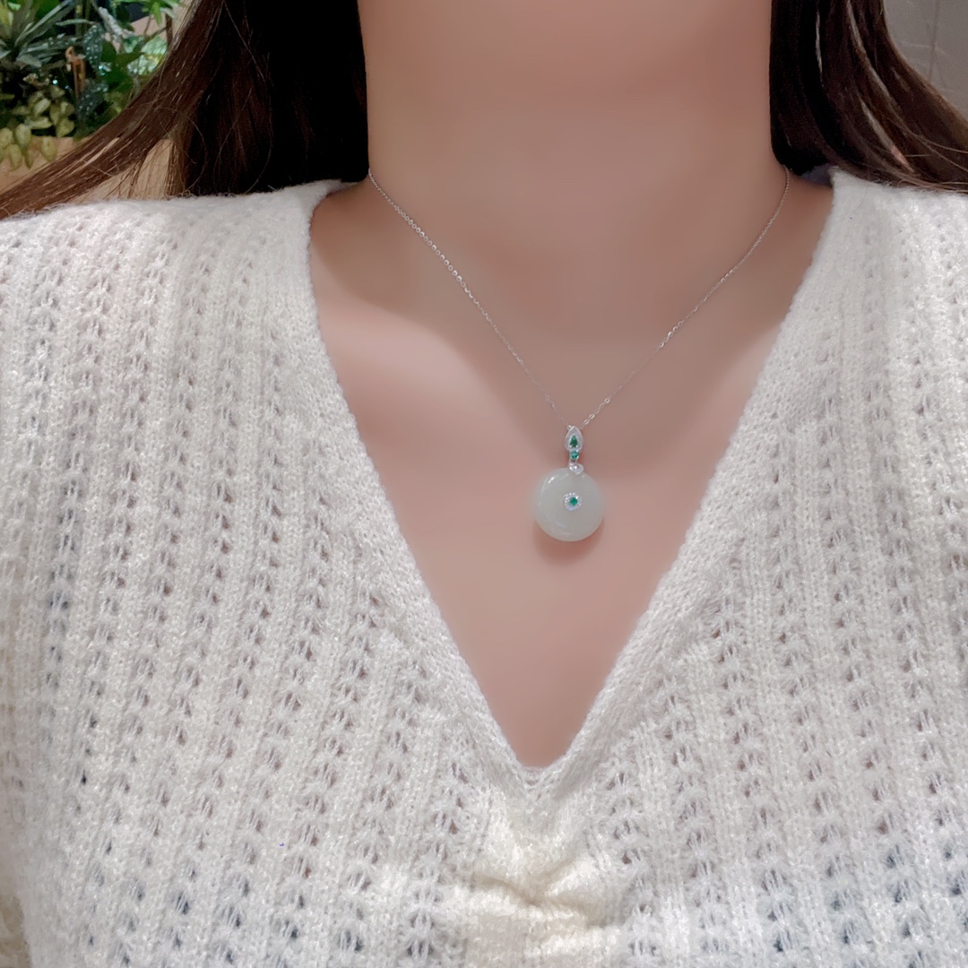 High Polish Silver Hetian Jade Necklace Intellectual Mother's Birthday