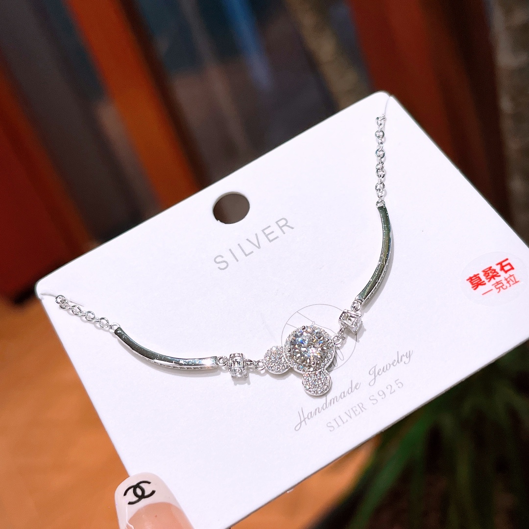 Fine Silver Moissanite Necklace Sweet & Cool Gift for Her Silver