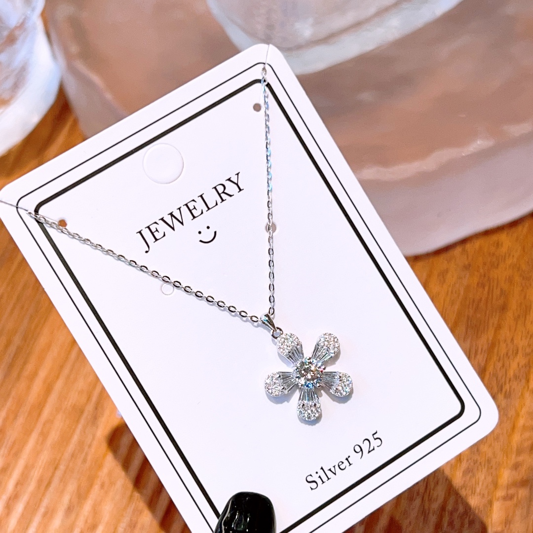 Solid Silver Moissanite Necklace Forest Workplace Silver