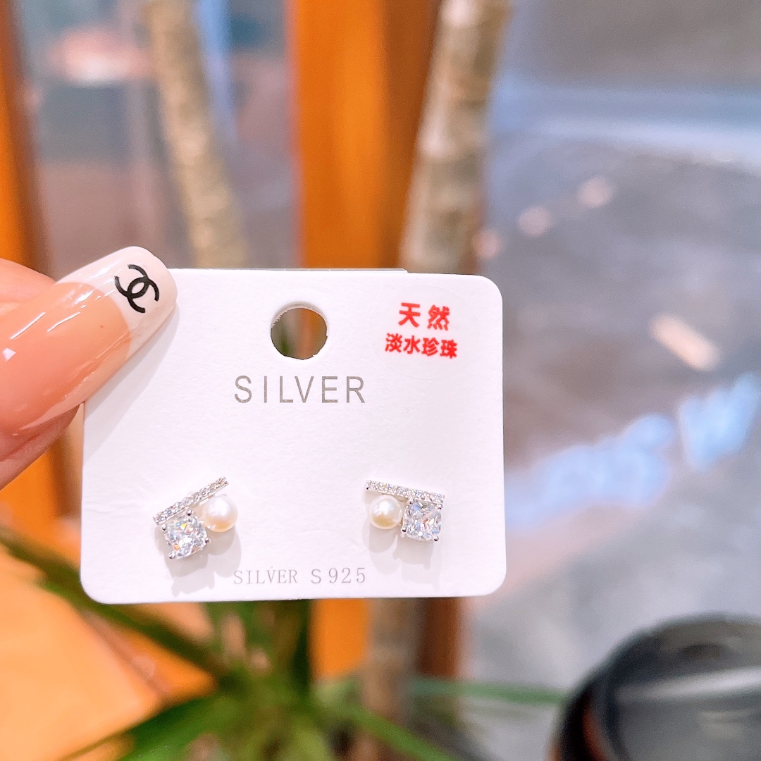 High Polish Silver Freshwater Pearl Studs Dainty Date Night Silver