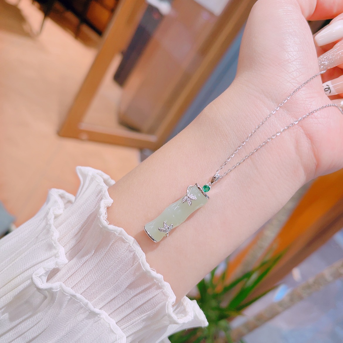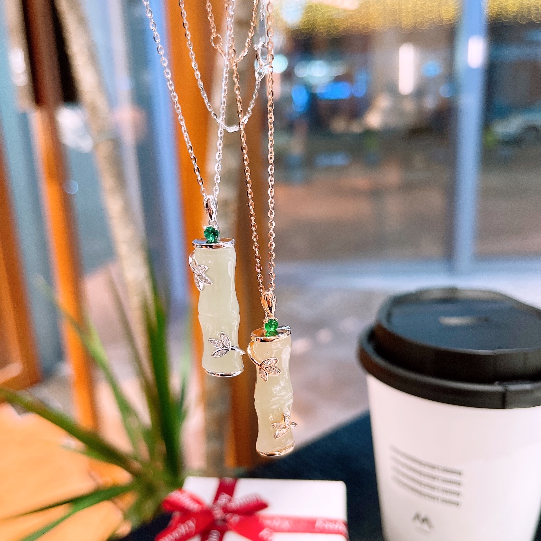 Fine Silver Hetian Jade Necklace Sweet & Cool Birthday Silver