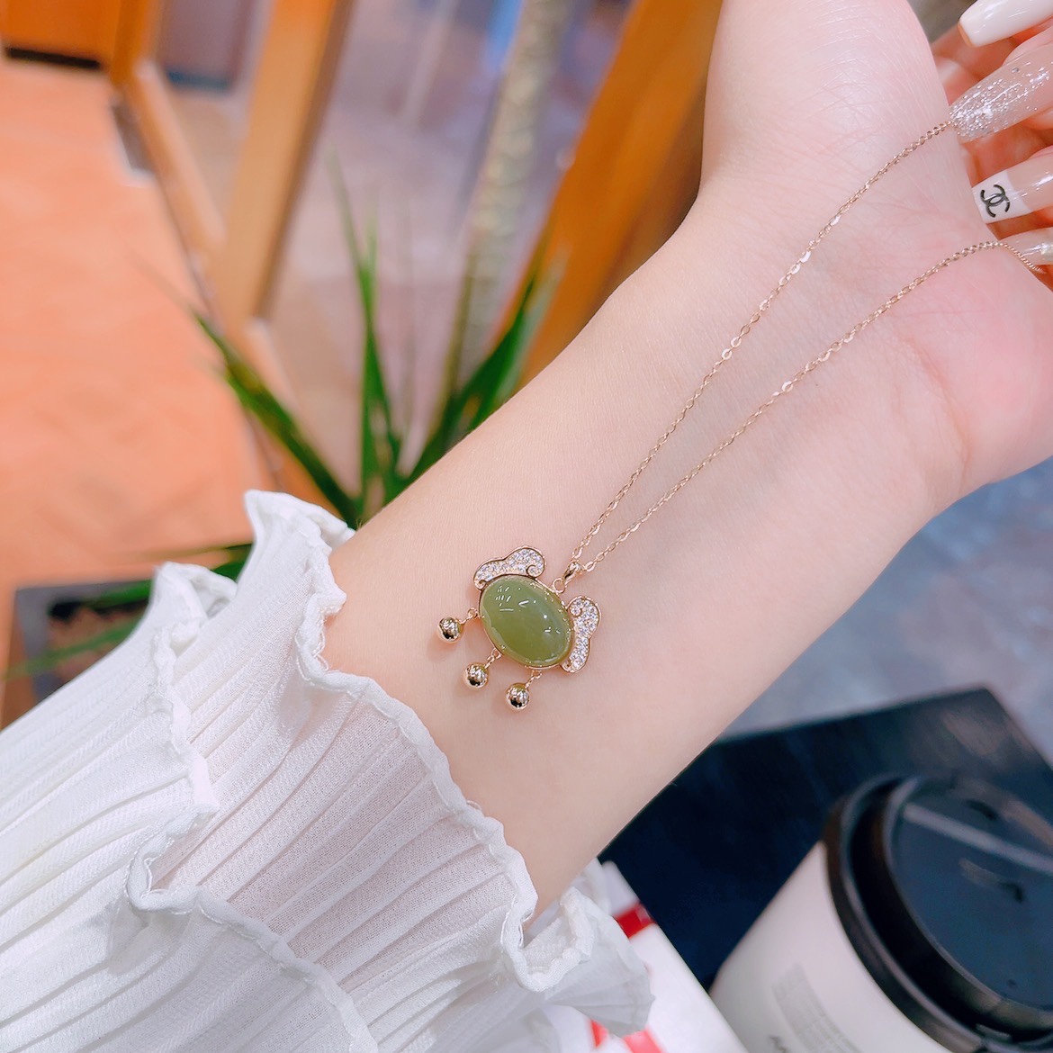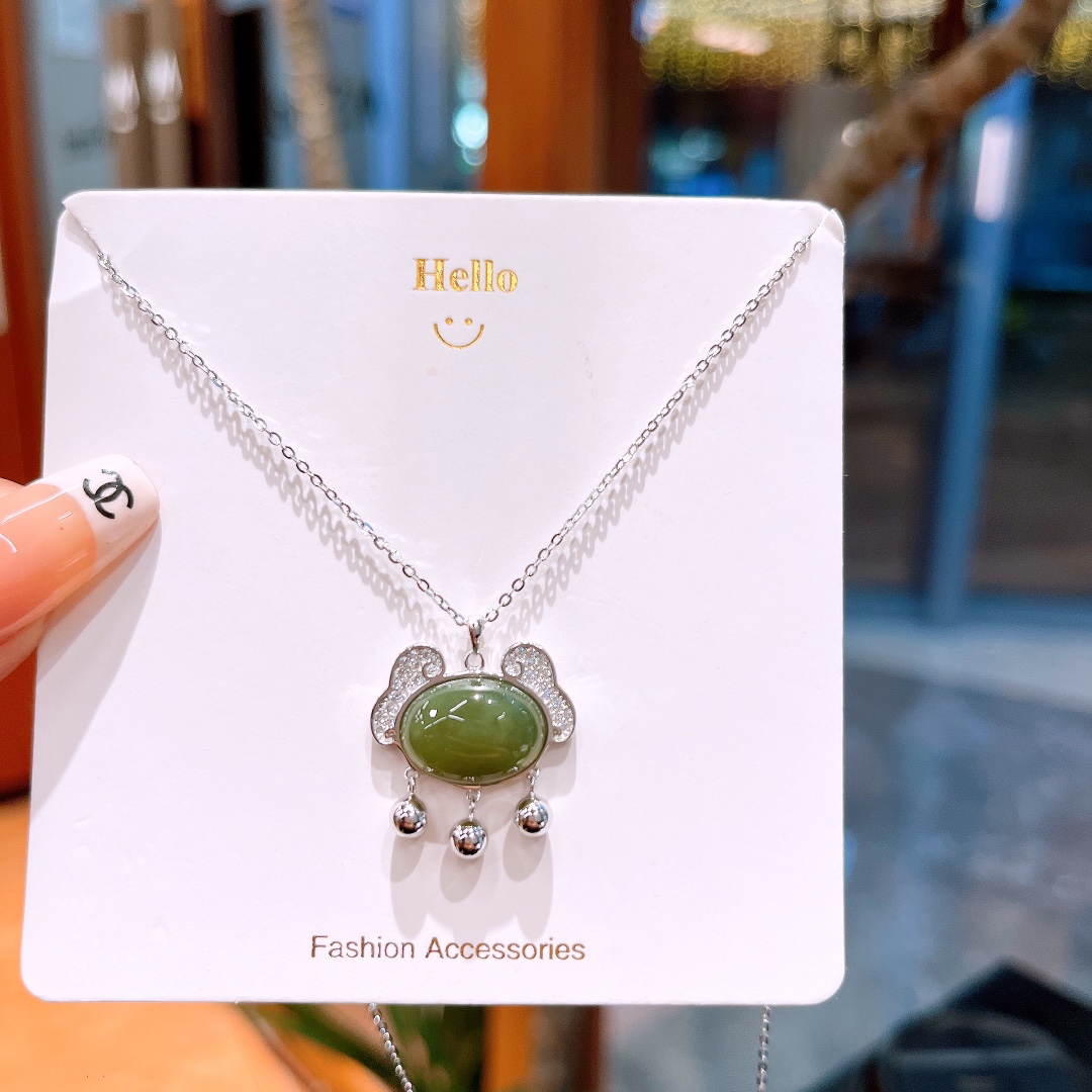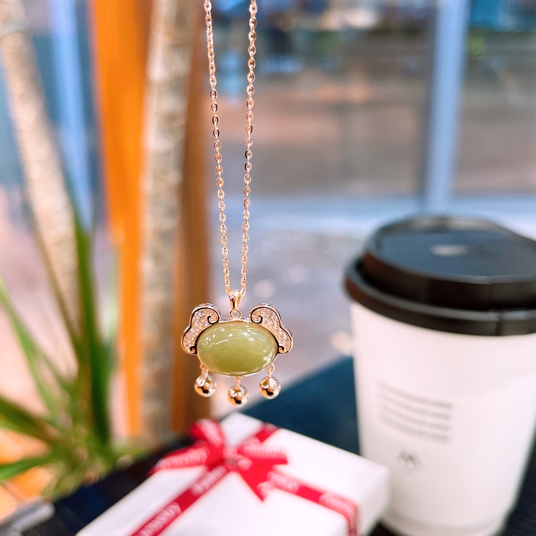 Solid Silver Hetian Jade Necklace Delicate Valentine's Day Gold