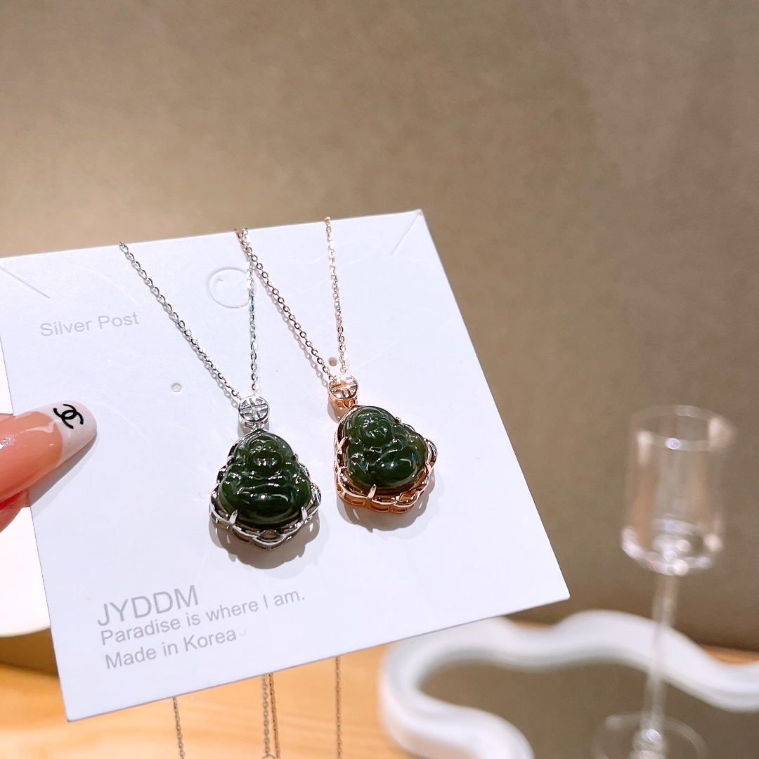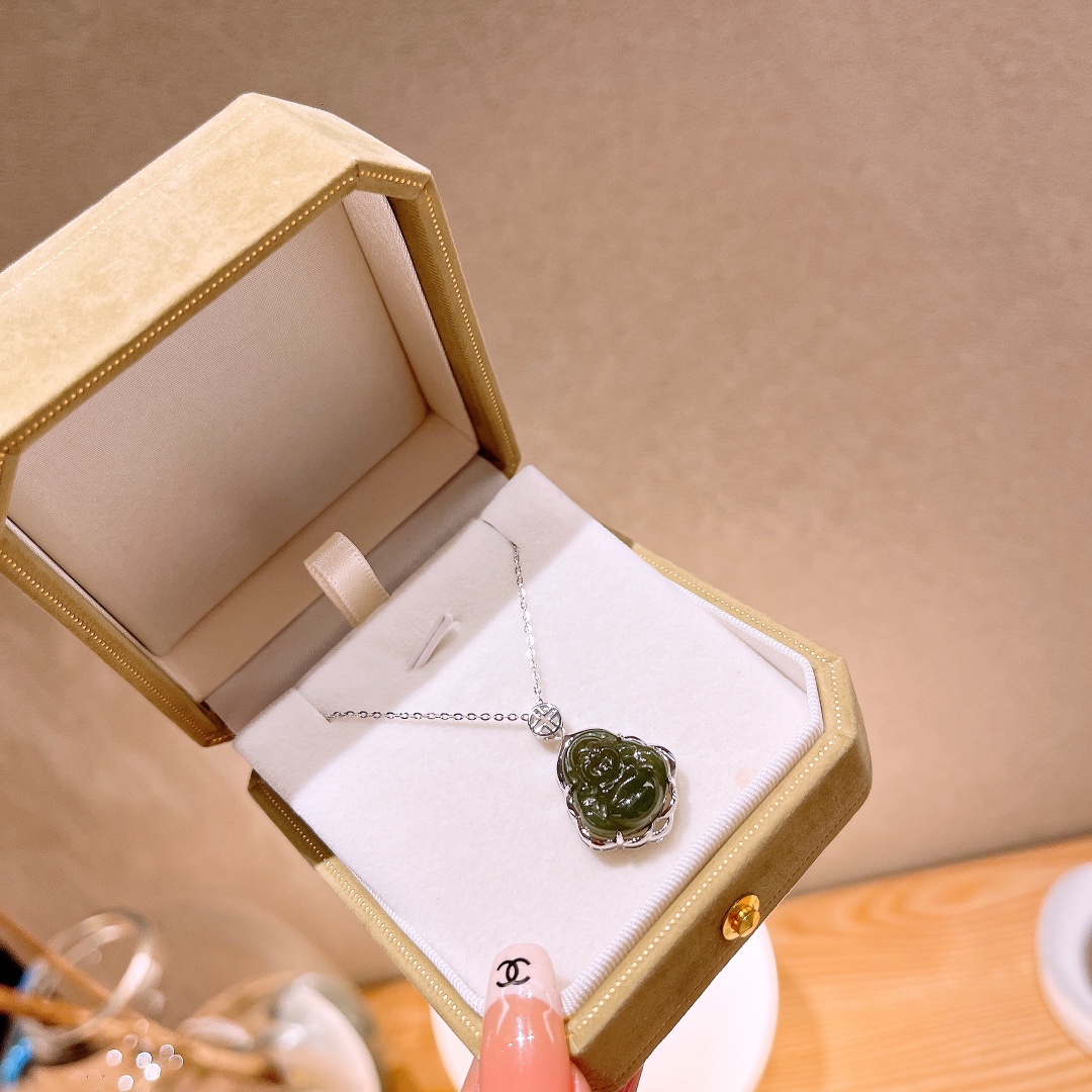 Nickel Free Silver Hetian Jade Necklace Delicate Office Silver