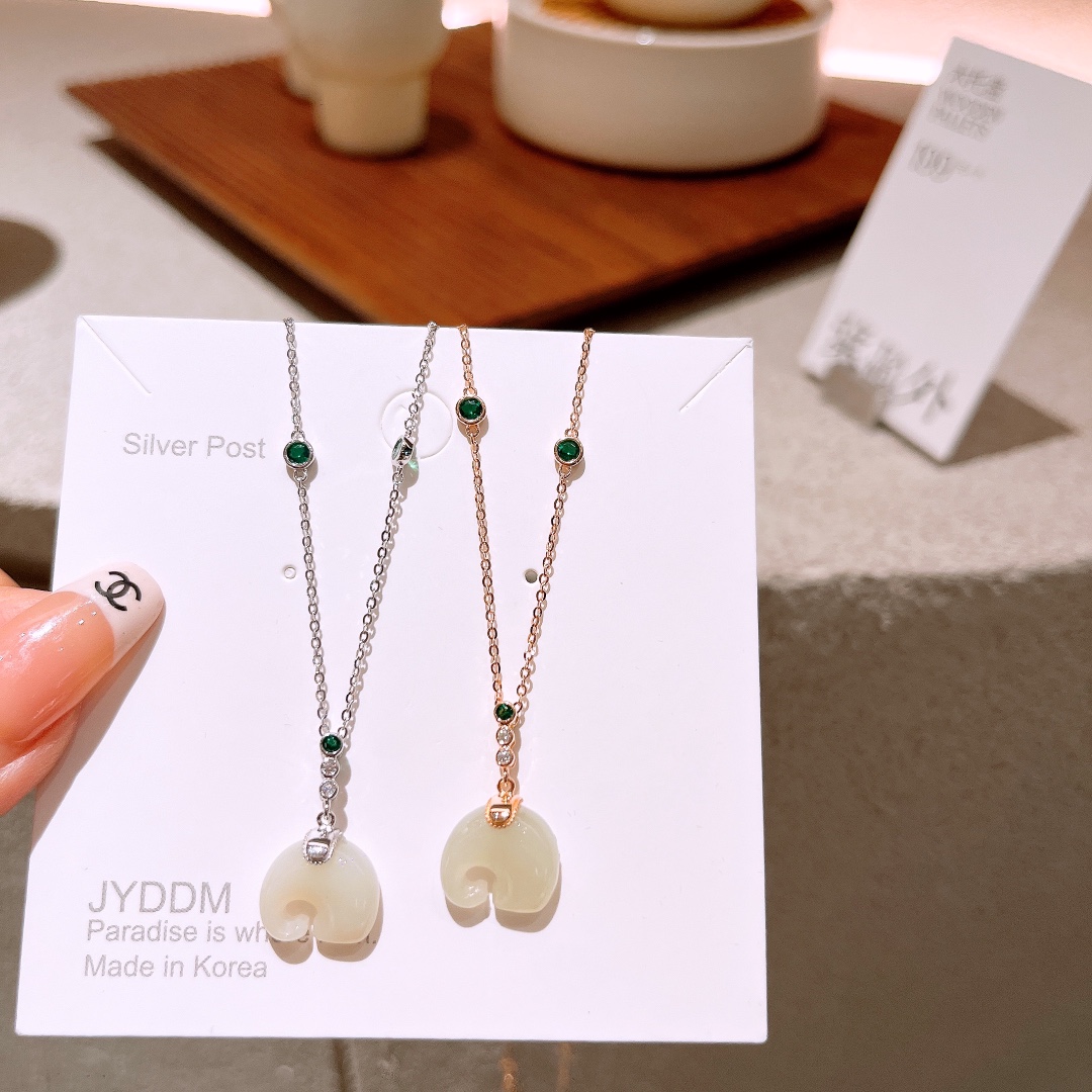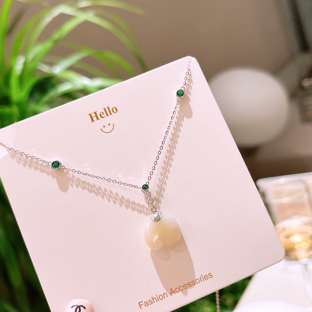 S925 Sterling Silver Hetian Jade Necklace Premium Spring Festival