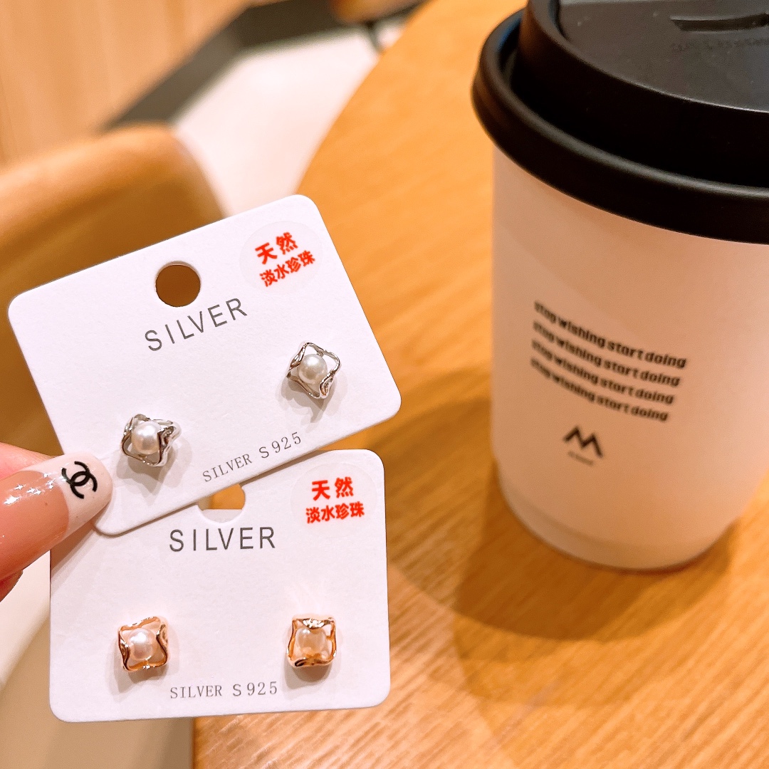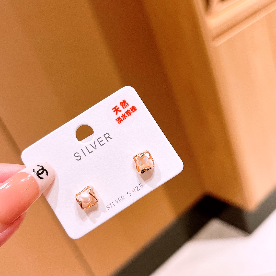 Fine Silver Freshwater Pearl Studs Ins Style Valentine's Day Gold