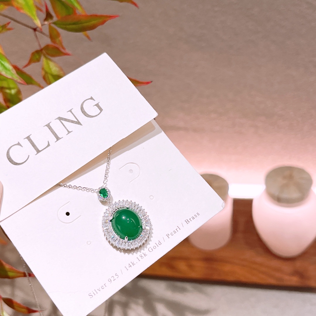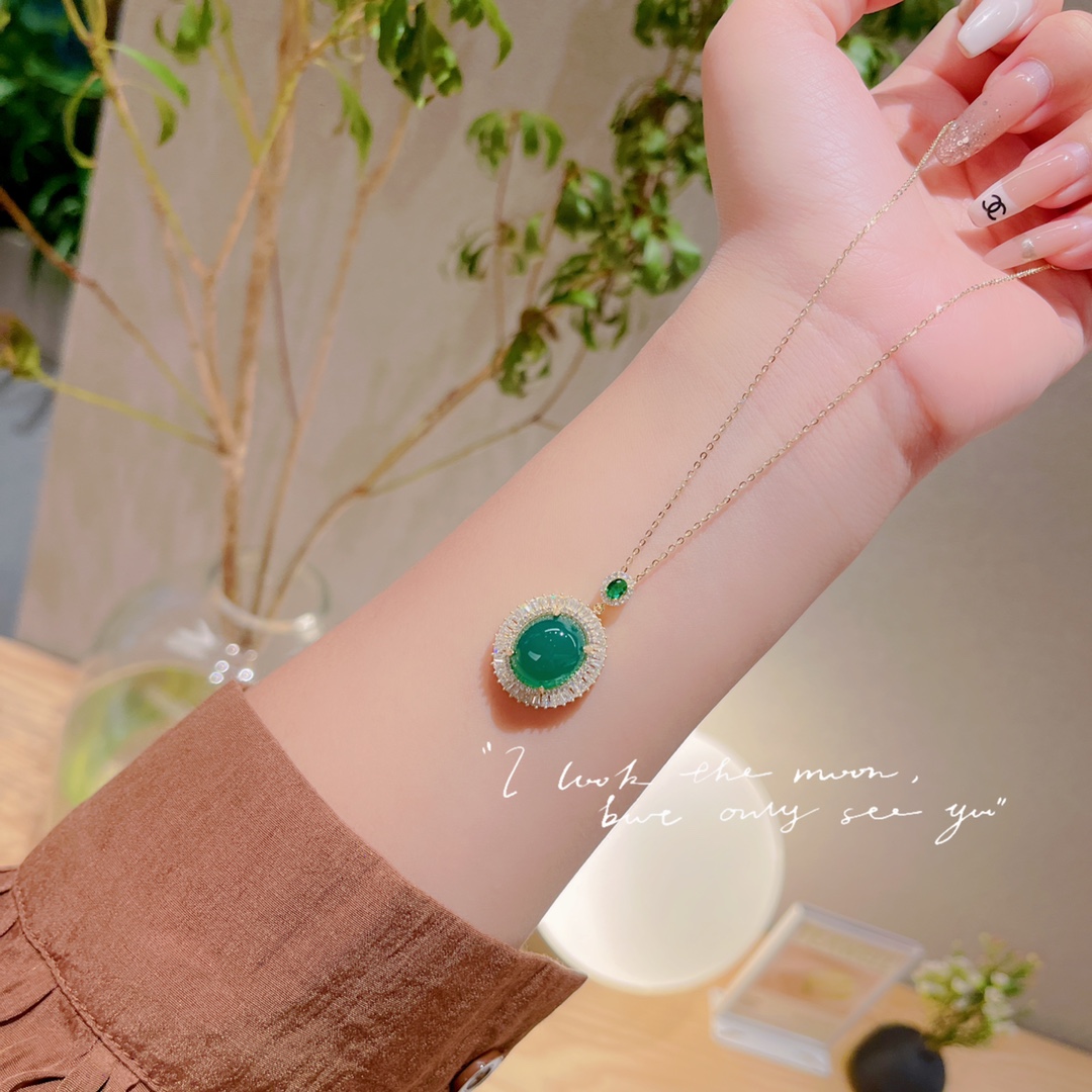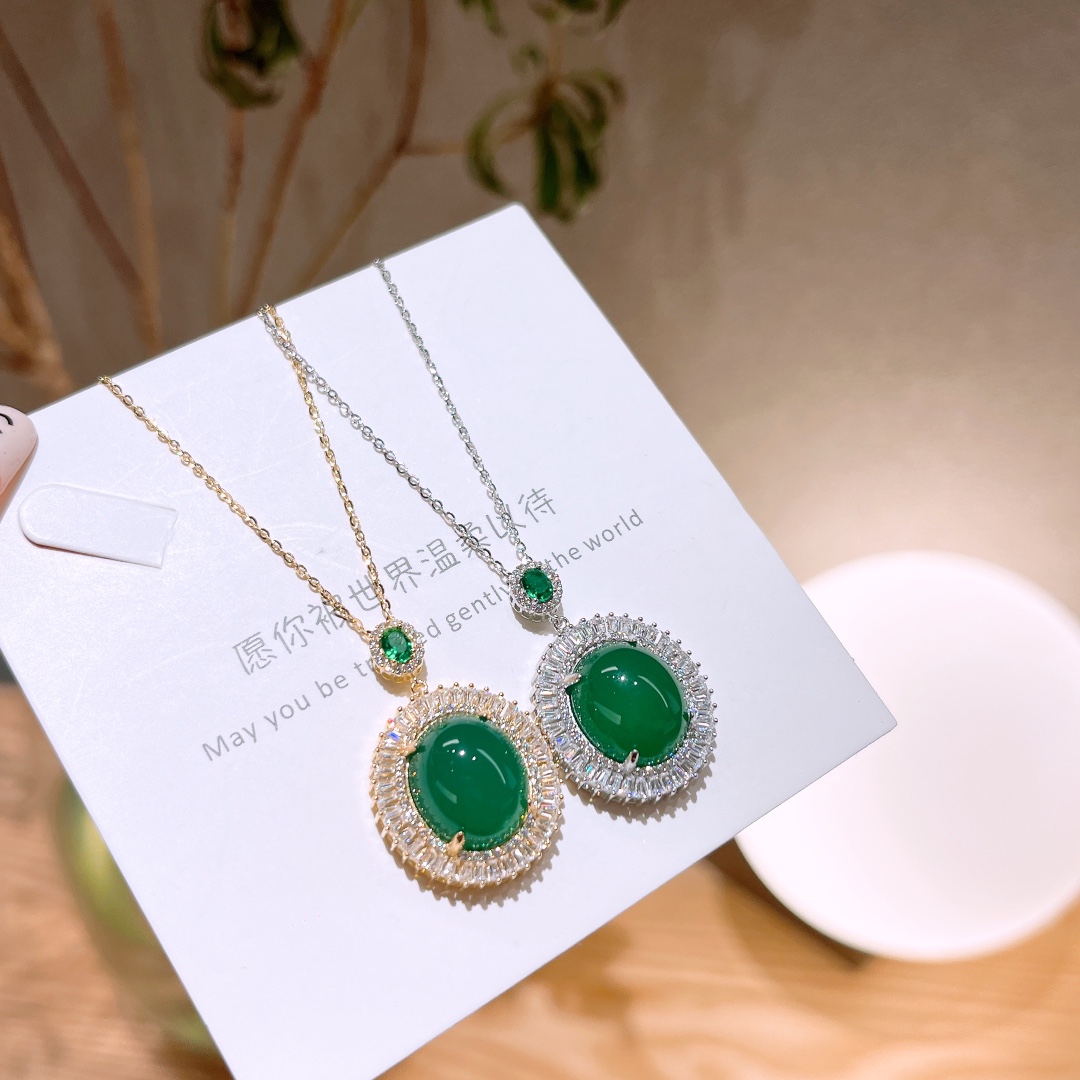 Solid Silver Green Chalcedony Necklace Ins Style Mother's Birthday