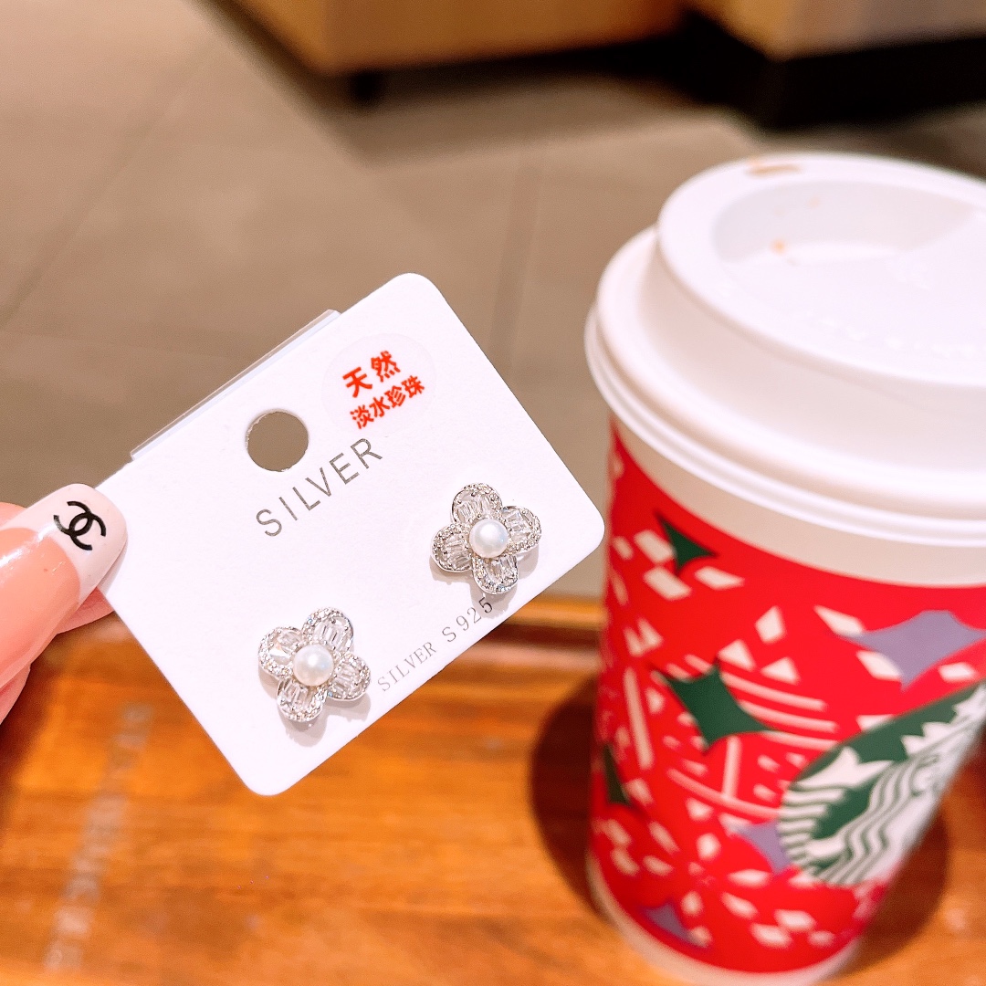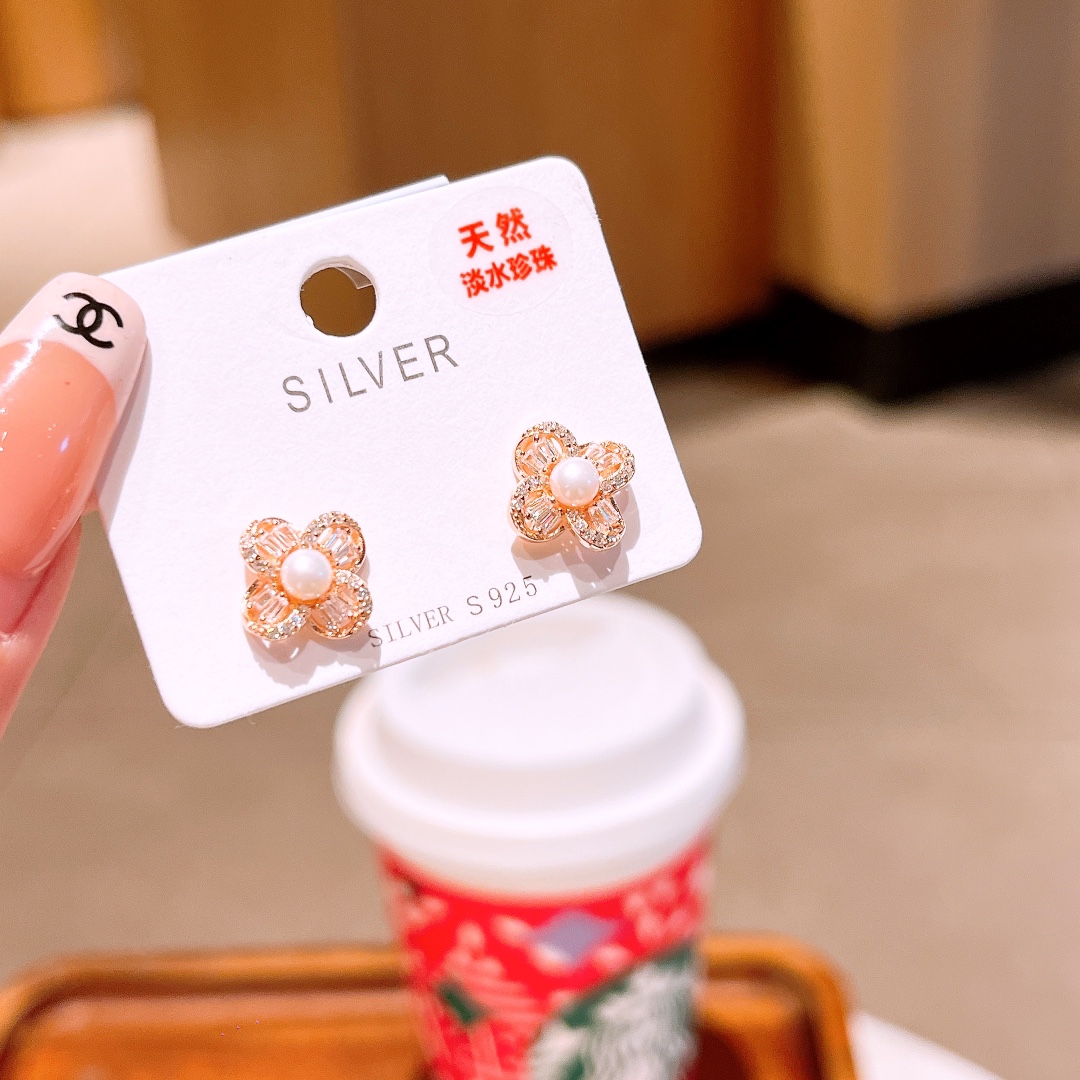 S925 Sterling Silver Freshwater Pearl Studs Ins Style Confession