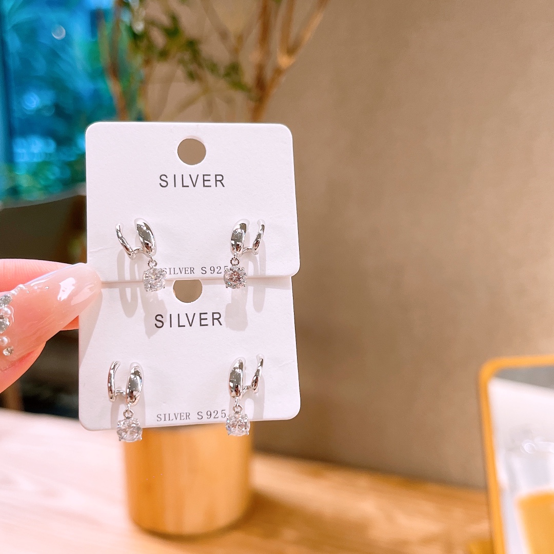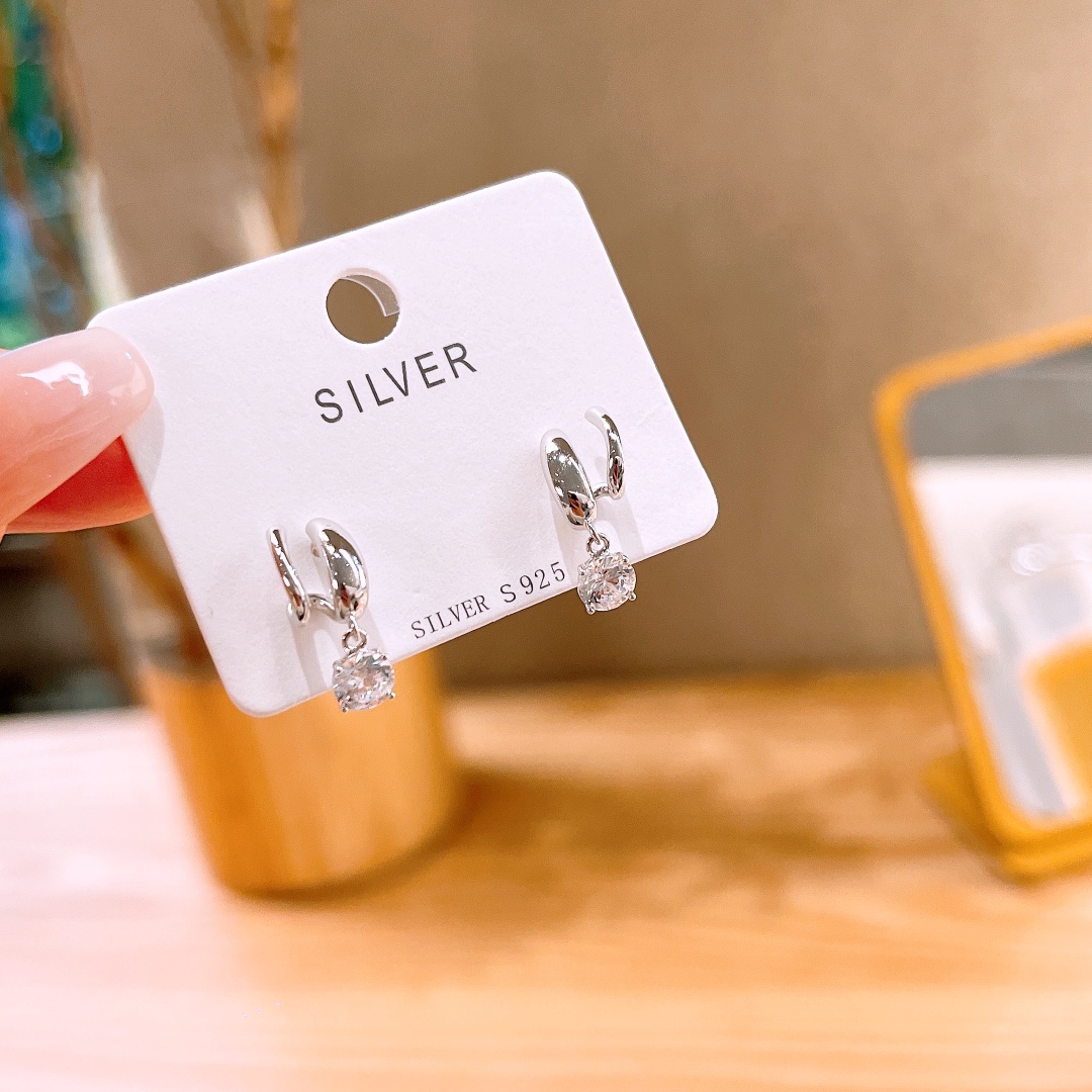 S925 Sterling Silver Earrings Korean Style Wedding Registration Gold
