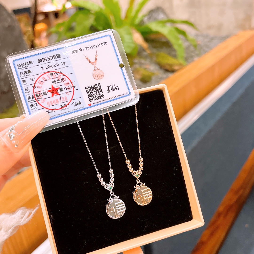 Hypoallergenic Silver Hetian Jade Necklace Gentle Bestie Gift Silver