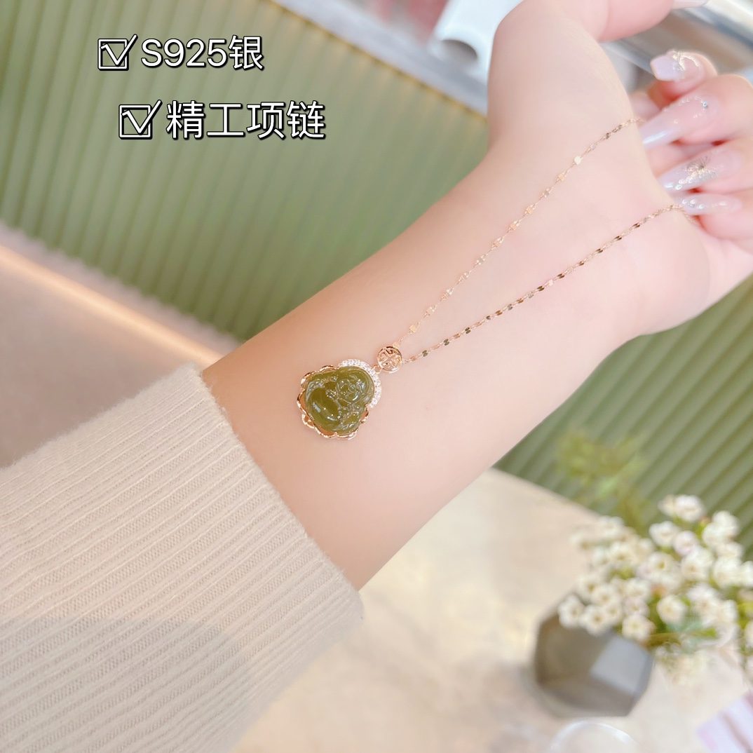 Hypoallergenic Silver Hetian Jade Necklace Chic Party Silver