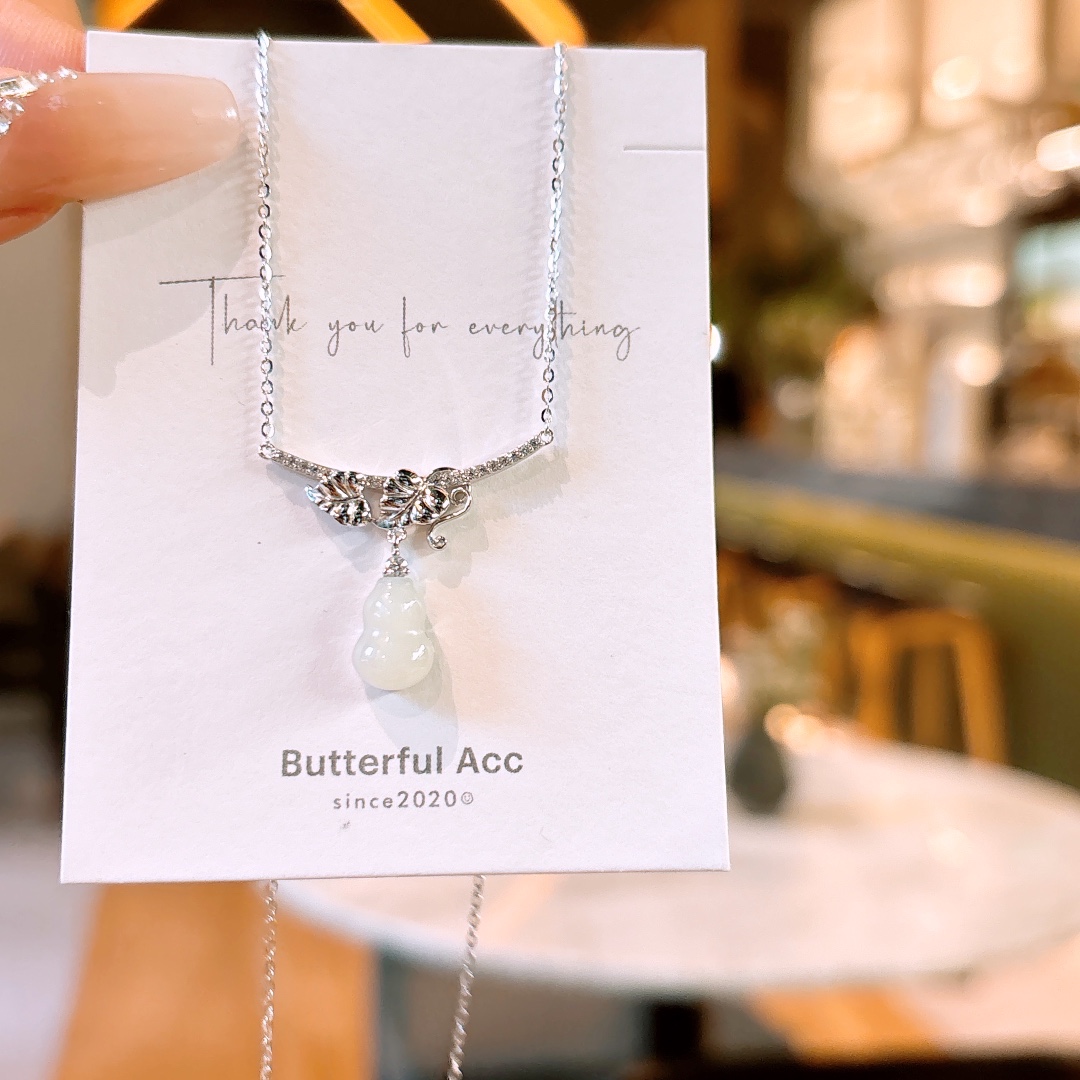 Fine Silver Hetian Jade Necklace Intellectual Gift for Her Silver