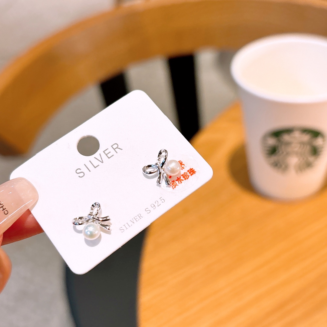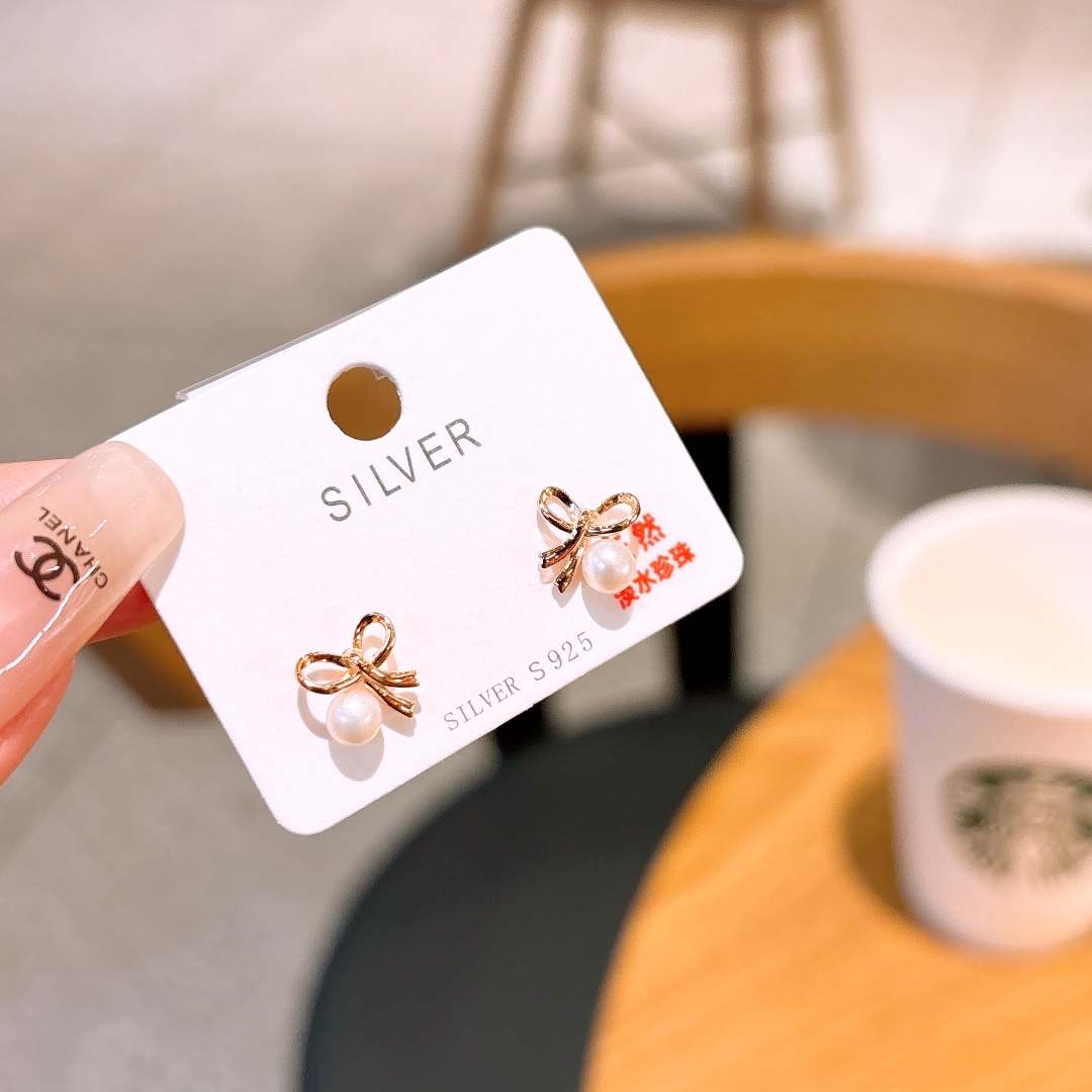 Fine Silver Freshwater Pearl Studs Korean Style Confession Gold