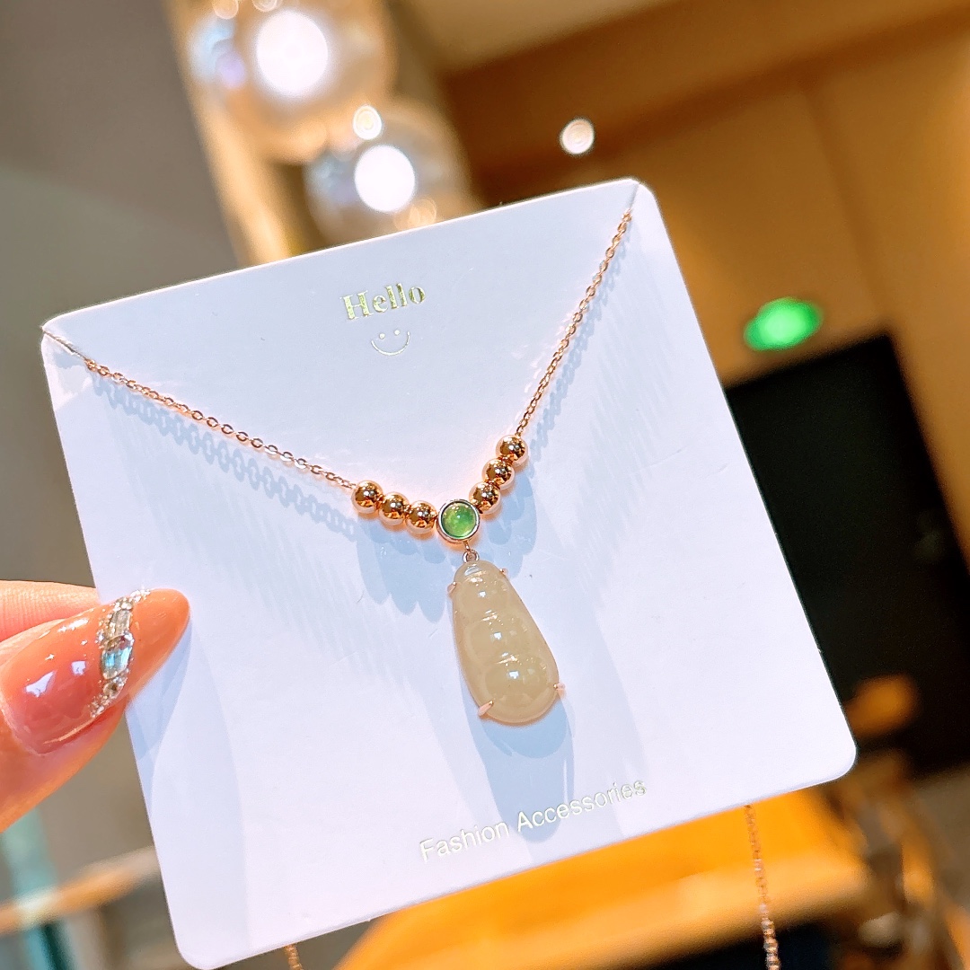 Fine Silver Hetian Jade Necklace Sweet & Cool Workplace Silver