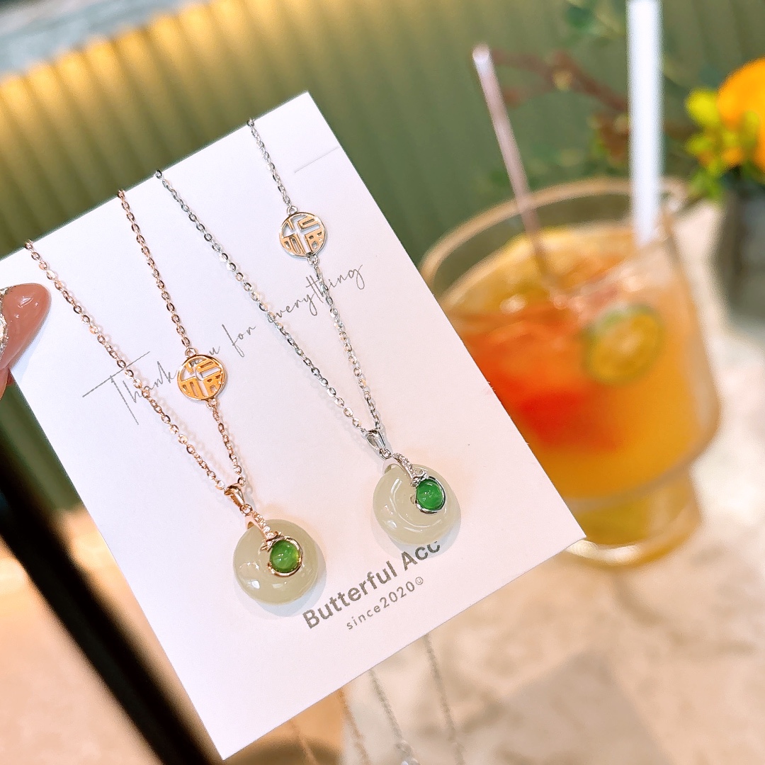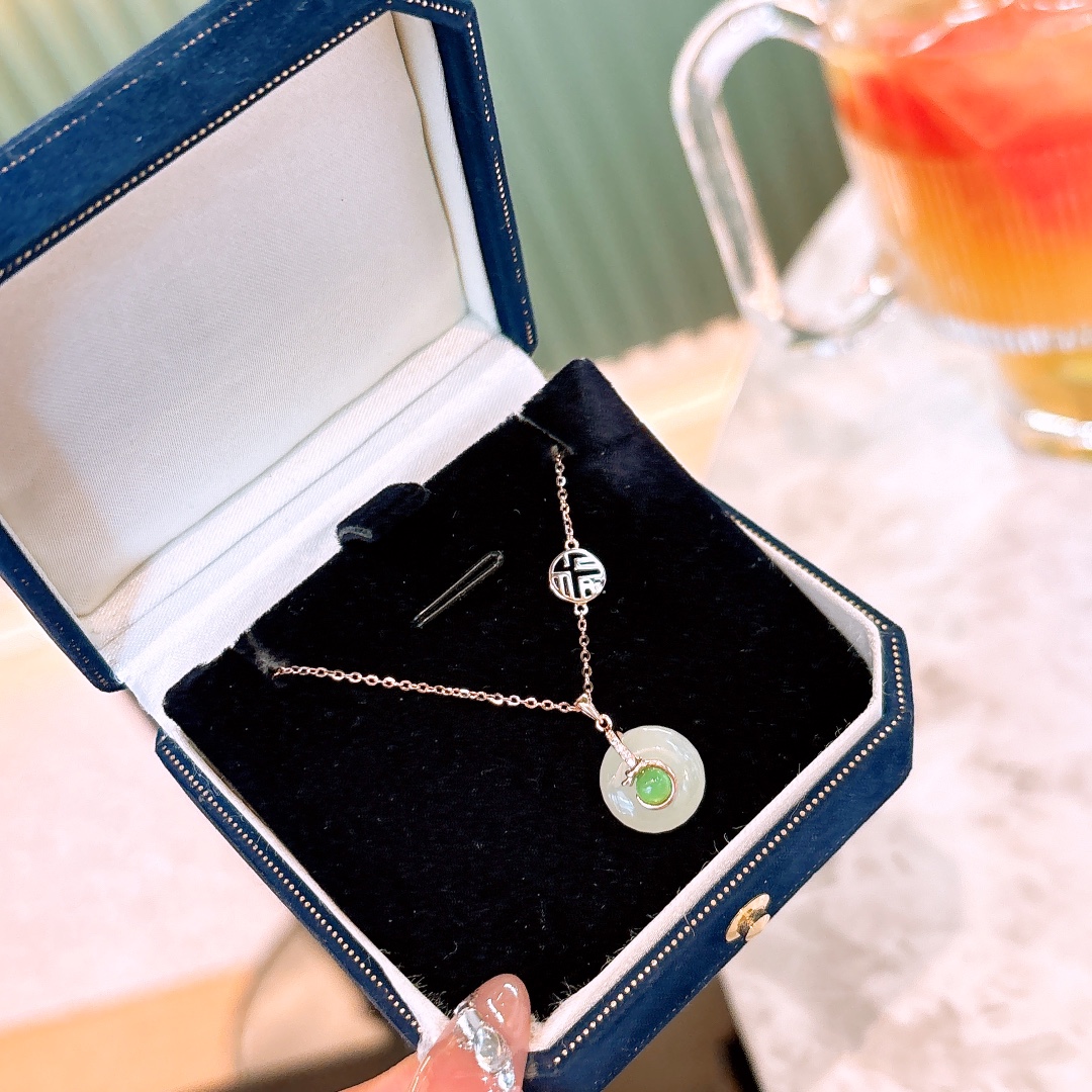 Low Allergy Silver Hetian Jade Necklace Korean Style Spring Festival