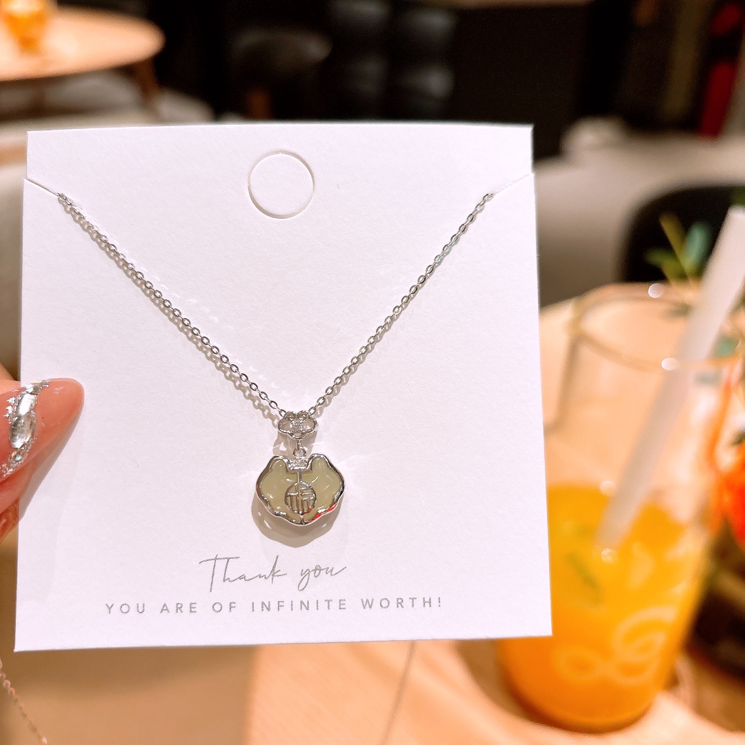 Hypoallergenic Silver Hetian Jade Necklace Unique Workplace Silver