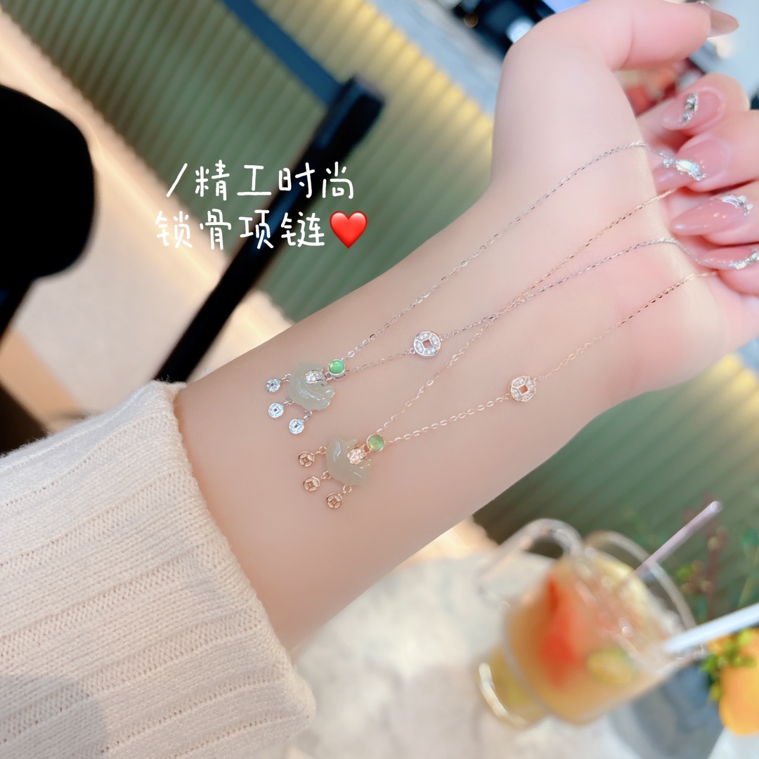 Low Allergy Silver Hetian Jade Necklace Sweet Anniversary Silver