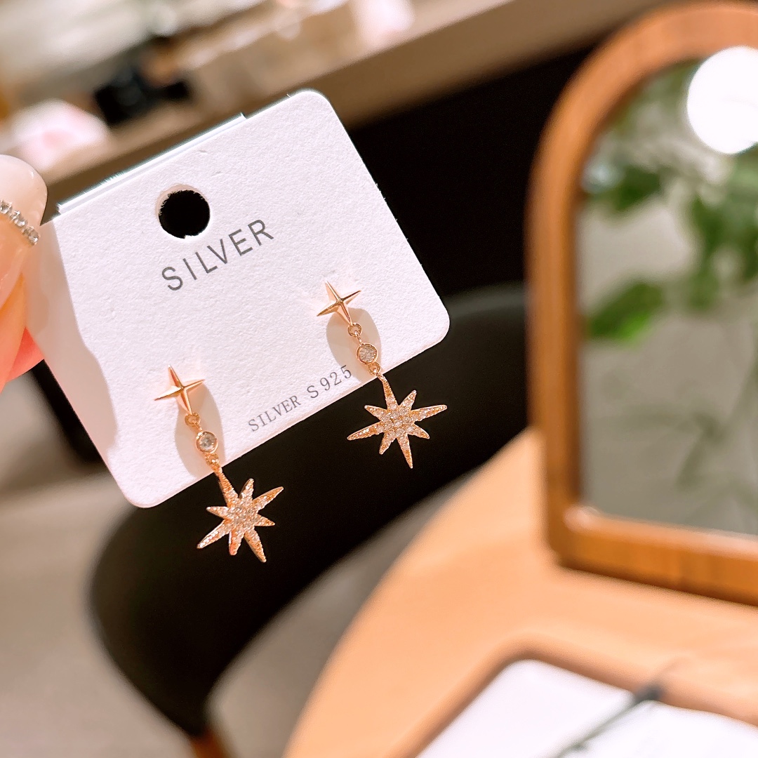 S925 Sterling Silver Earrings Unique Wedding Gold
