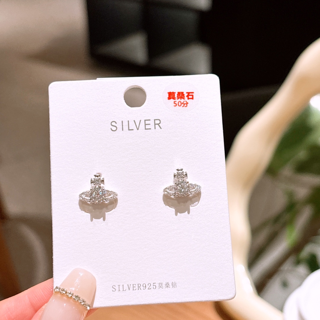 Solid Silver Moissanite Studs Premium Mother's Birthday Silver