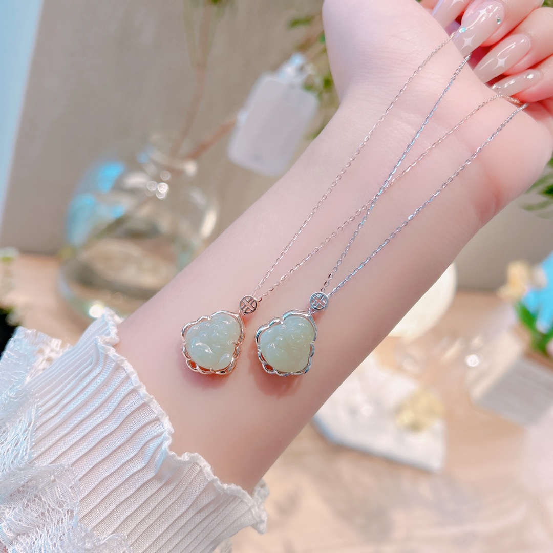 Nickel Free Silver Hetian Jade Necklace Cute Office Silver