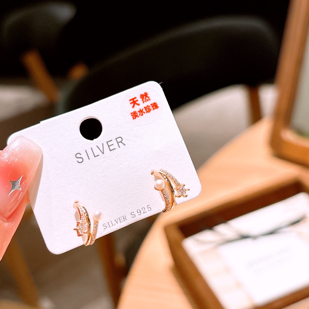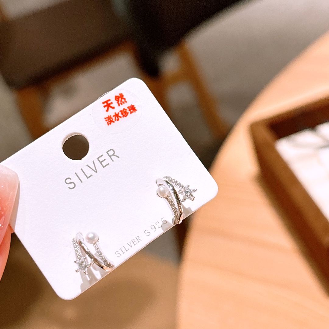 S925 Sterling Silver Freshwater Pearl Studs Intellectual Annual Party