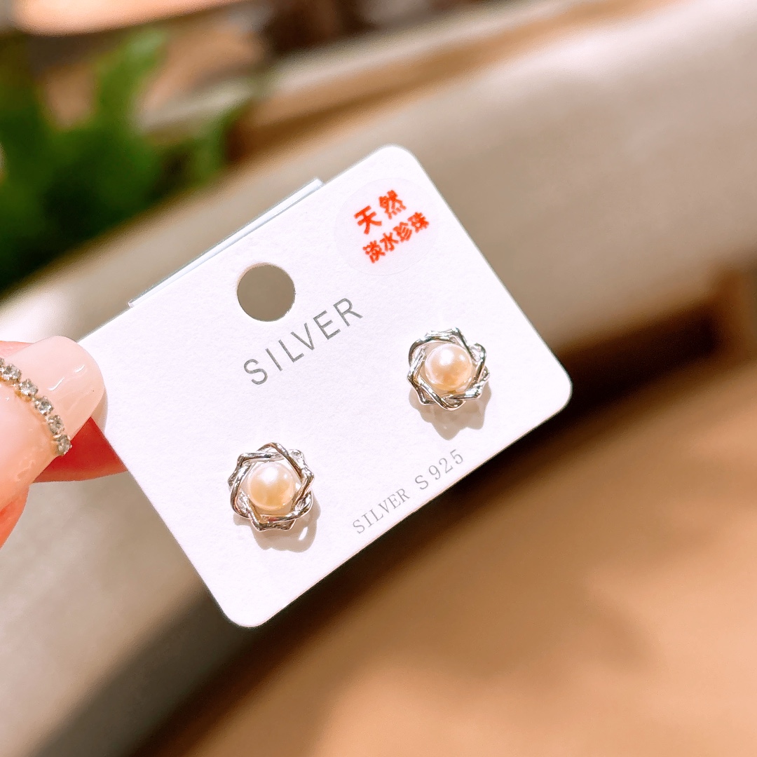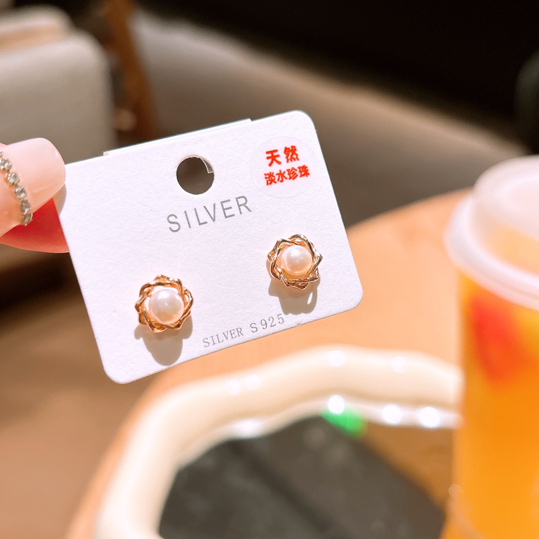 Hypoallergenic Silver Freshwater Pearl Studs Light Luxury Mother's Day