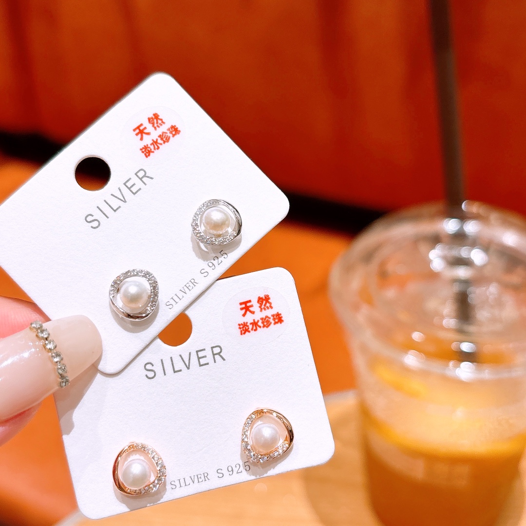 S925 Sterling Silver Freshwater Pearl Studs Romantic Mother's Birthday