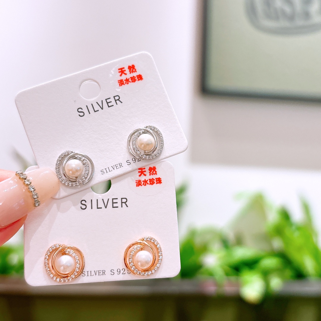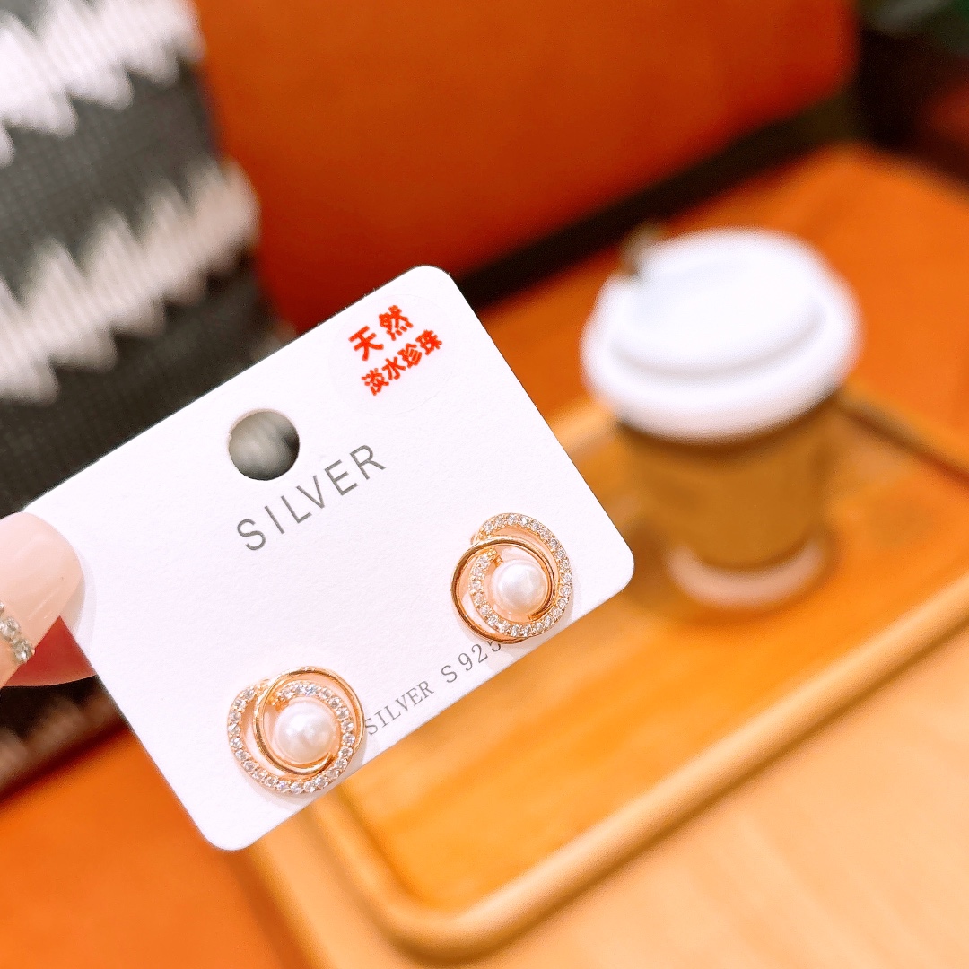 925 Silver Freshwater Pearl Studs Intellectual Banquet Gold