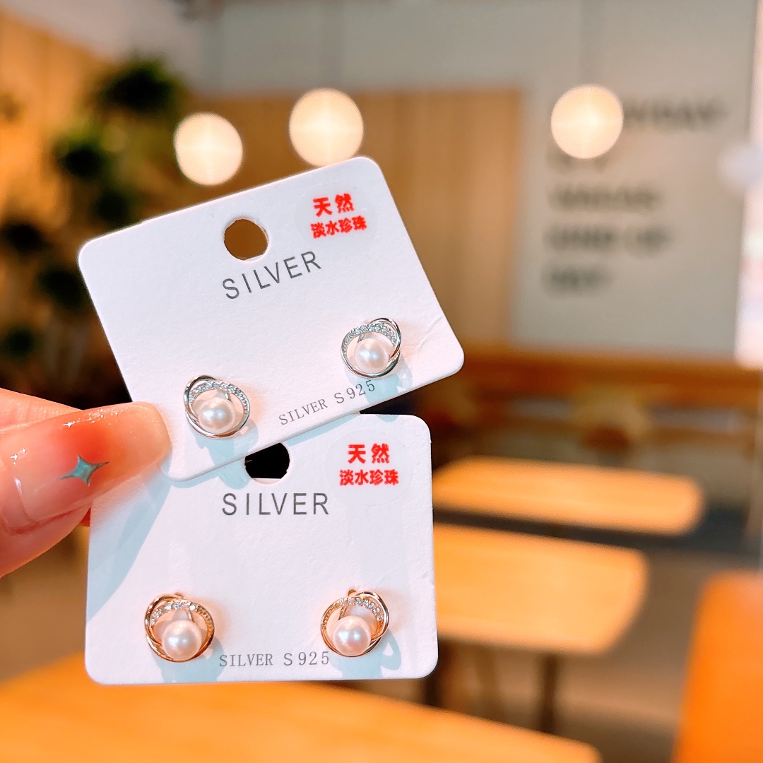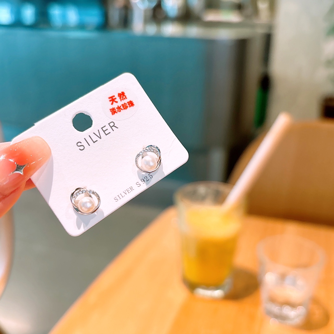 S925 Sterling Silver Freshwater Pearl Studs Precision Christmas Silver