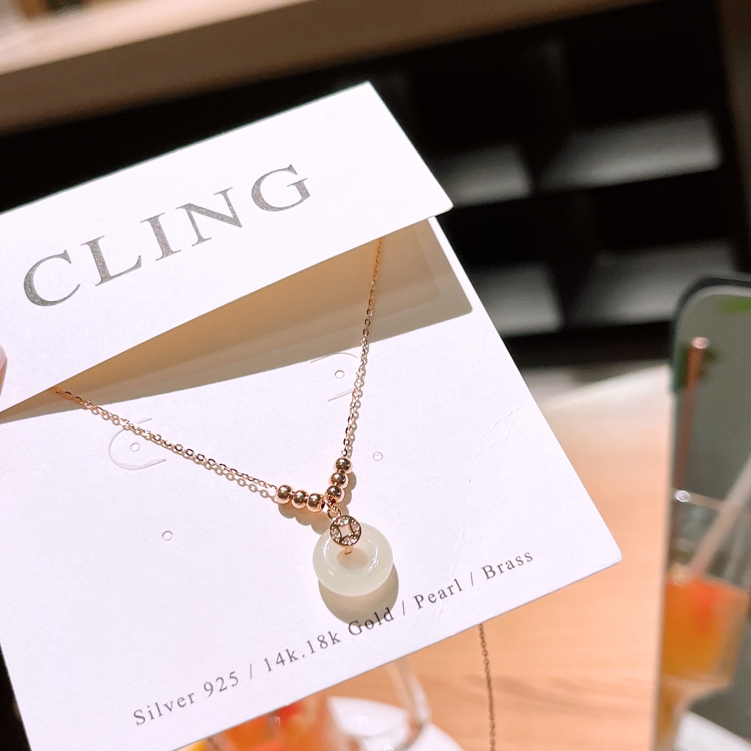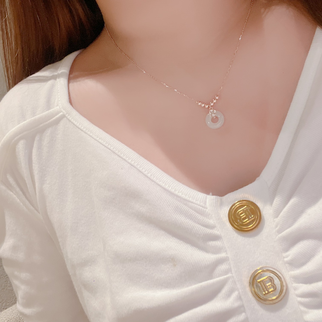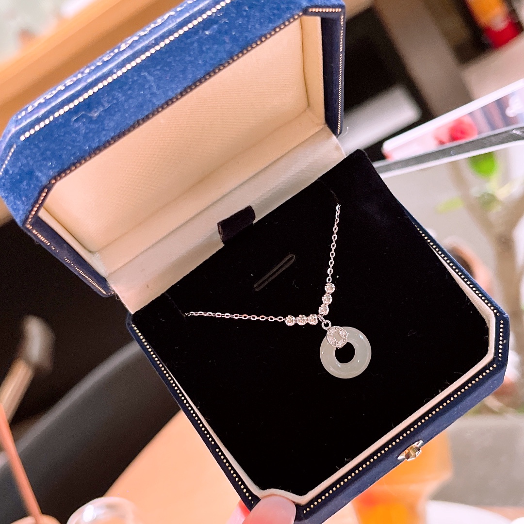 Fine Silver Hetian Jade Necklace Girly Mother's Birthday Gold