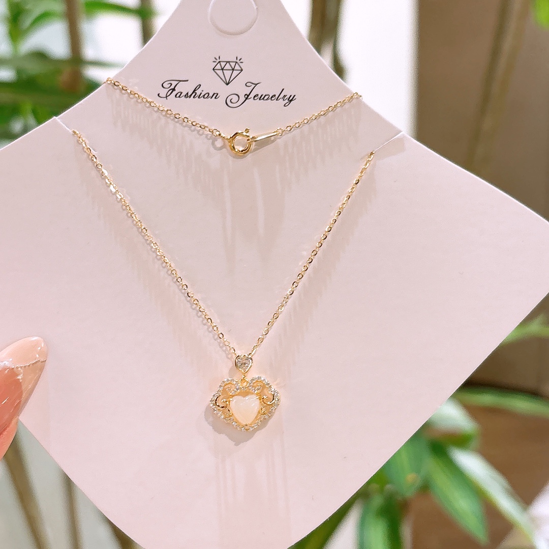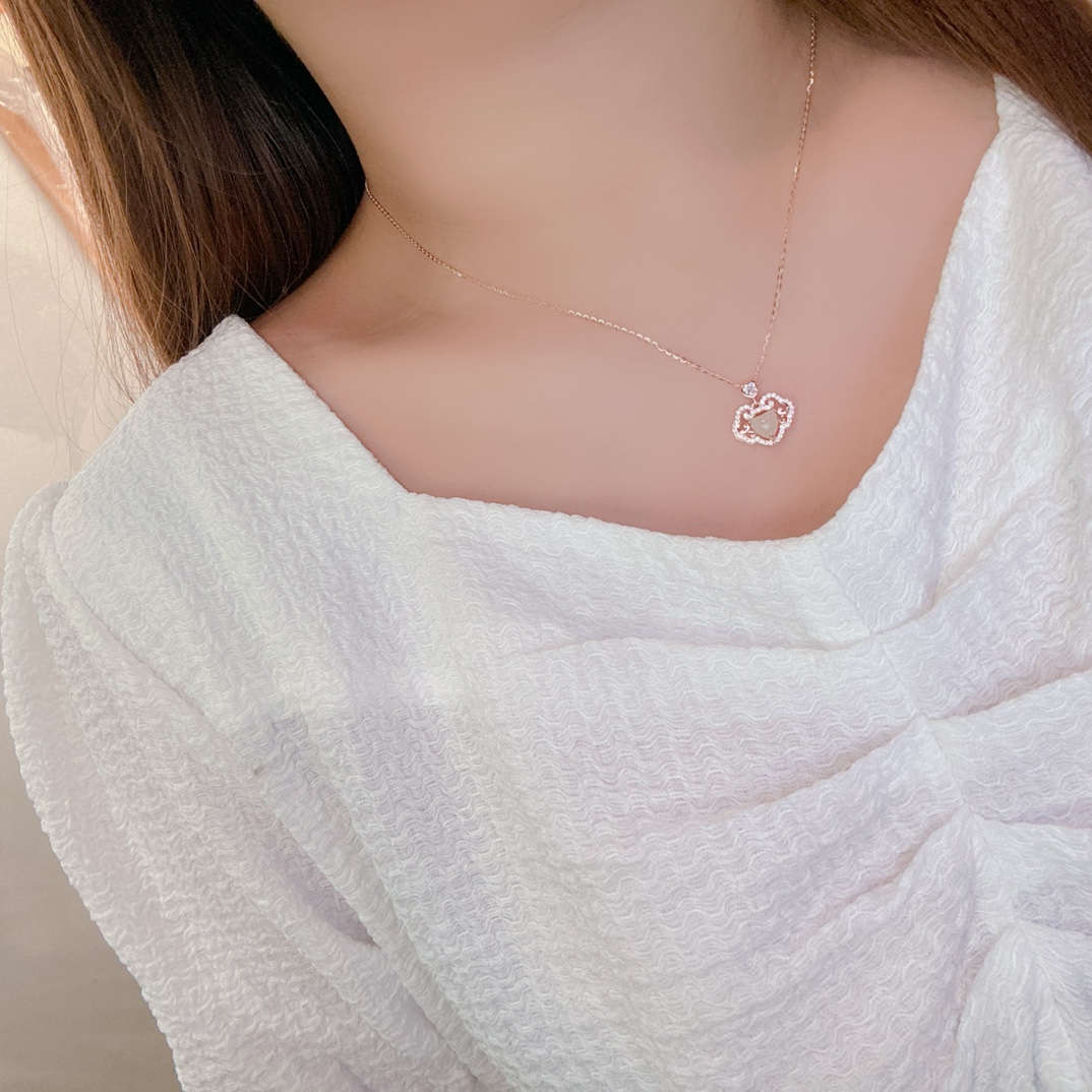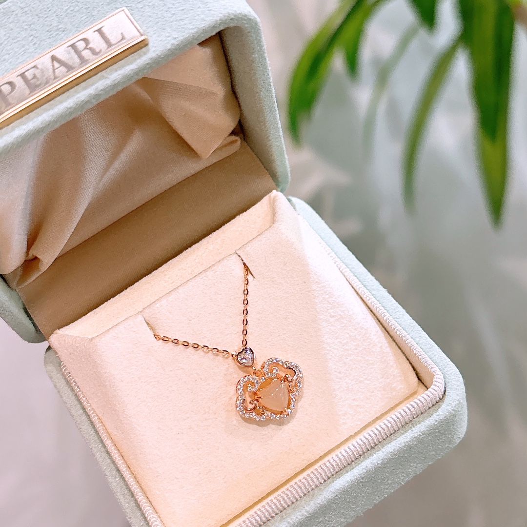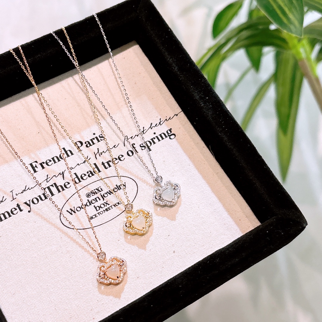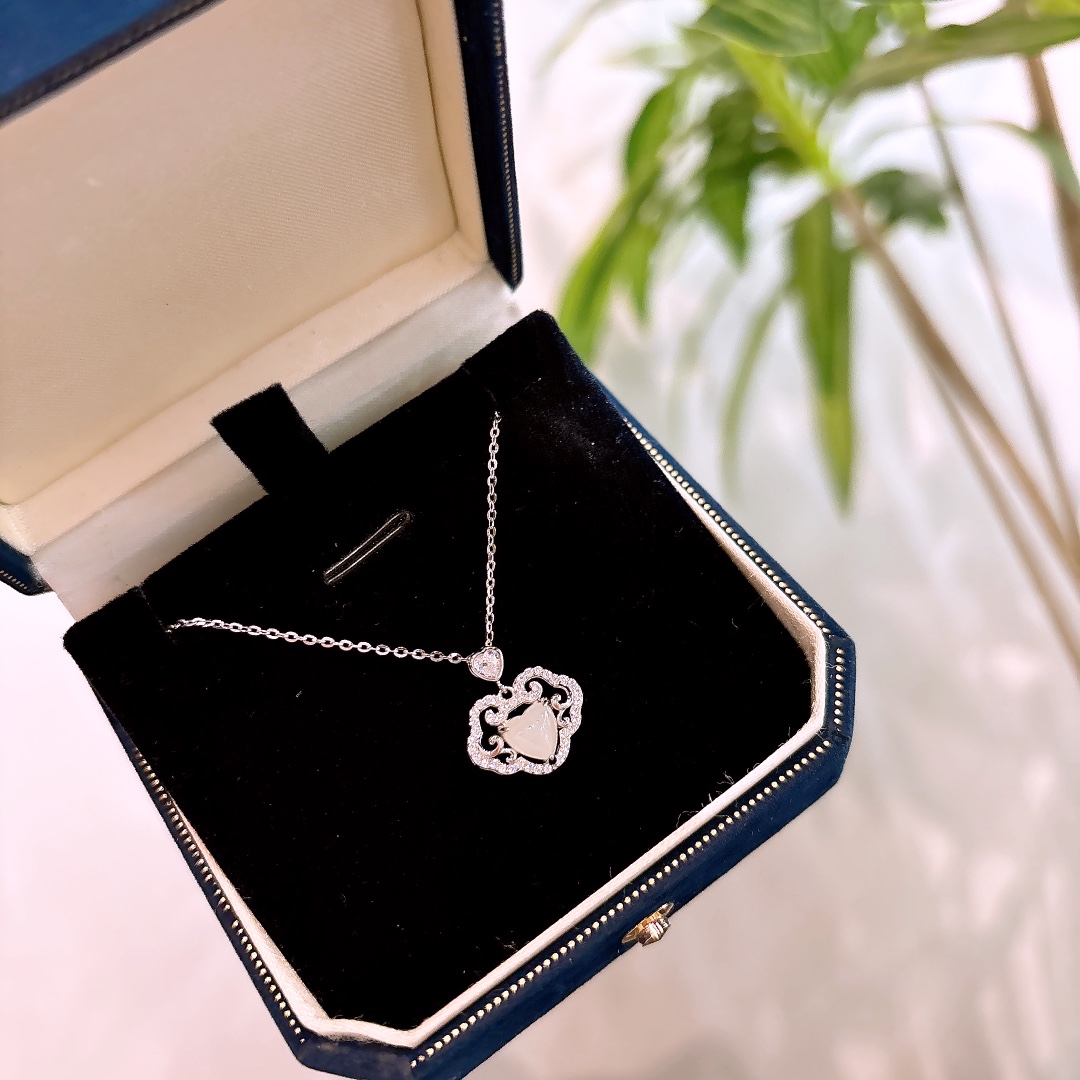 S925 Sterling Silver Hetian Jade Necklace Romantic Anniversary Gold