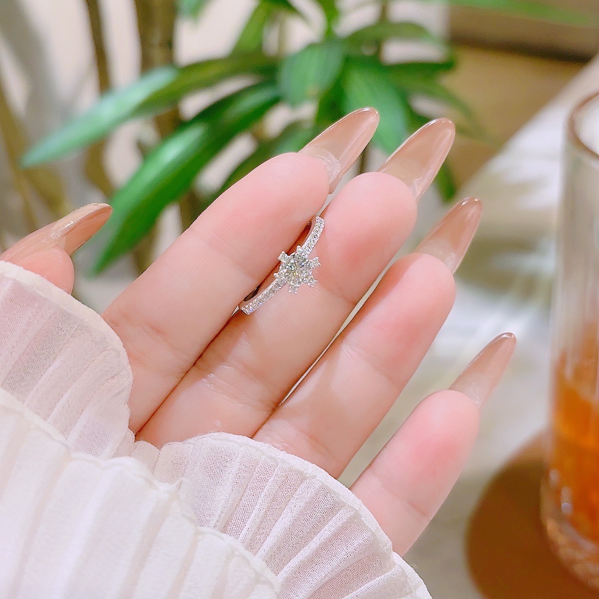 S925 Sterling Silver Moissanite Ring Fresh Confession Gold