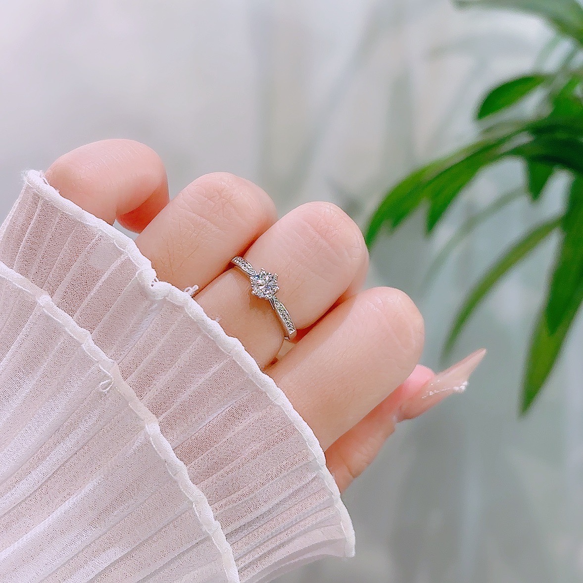 Nickel Free Silver Moissanite Ring Korean Style Mother's Birthday